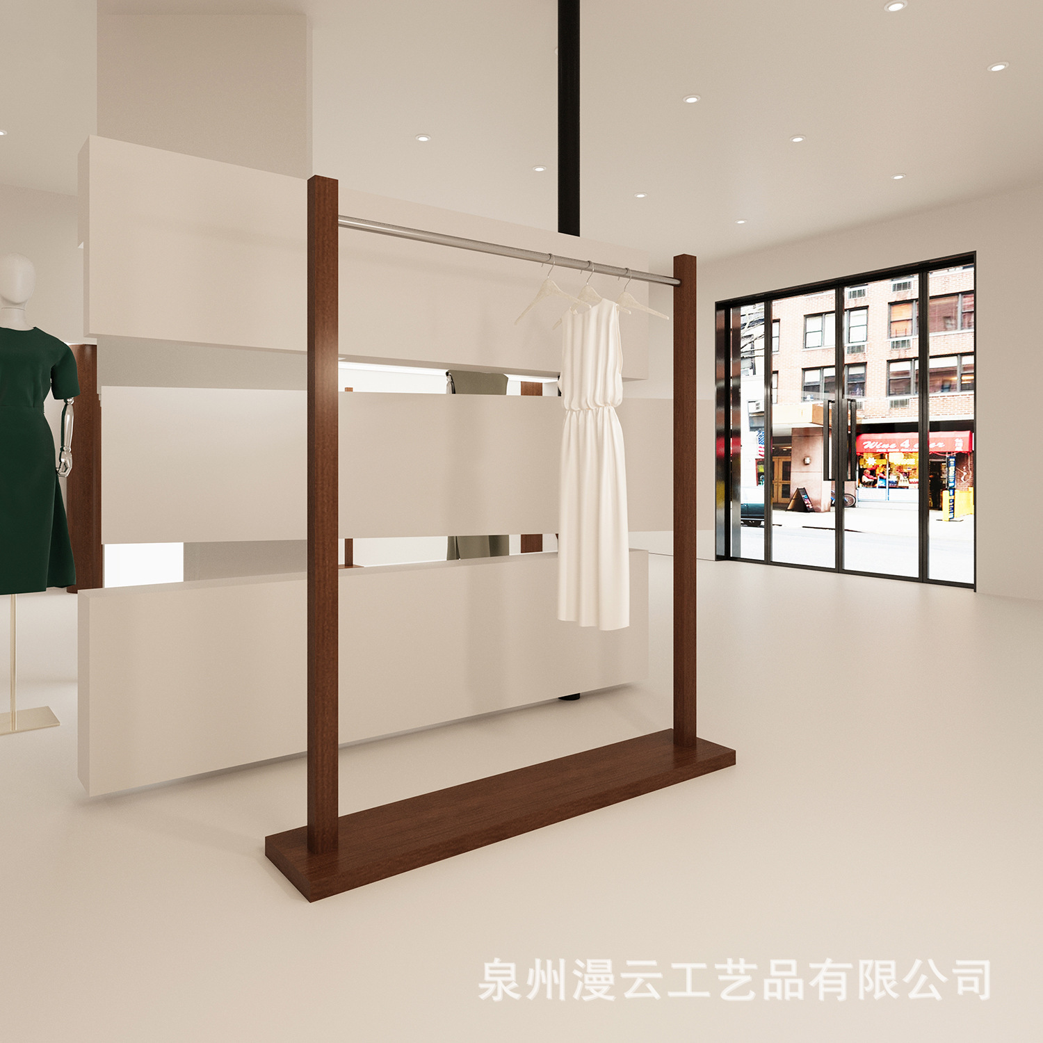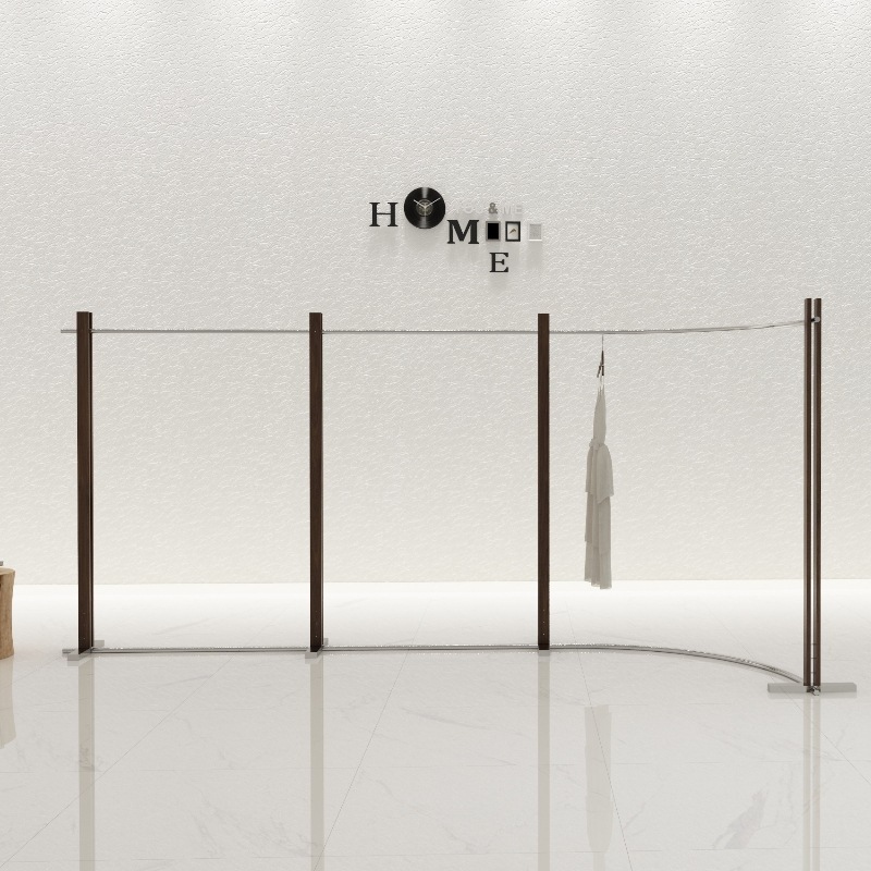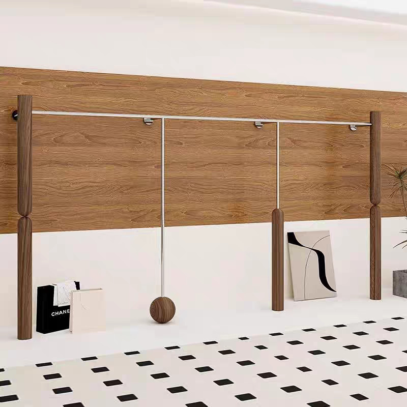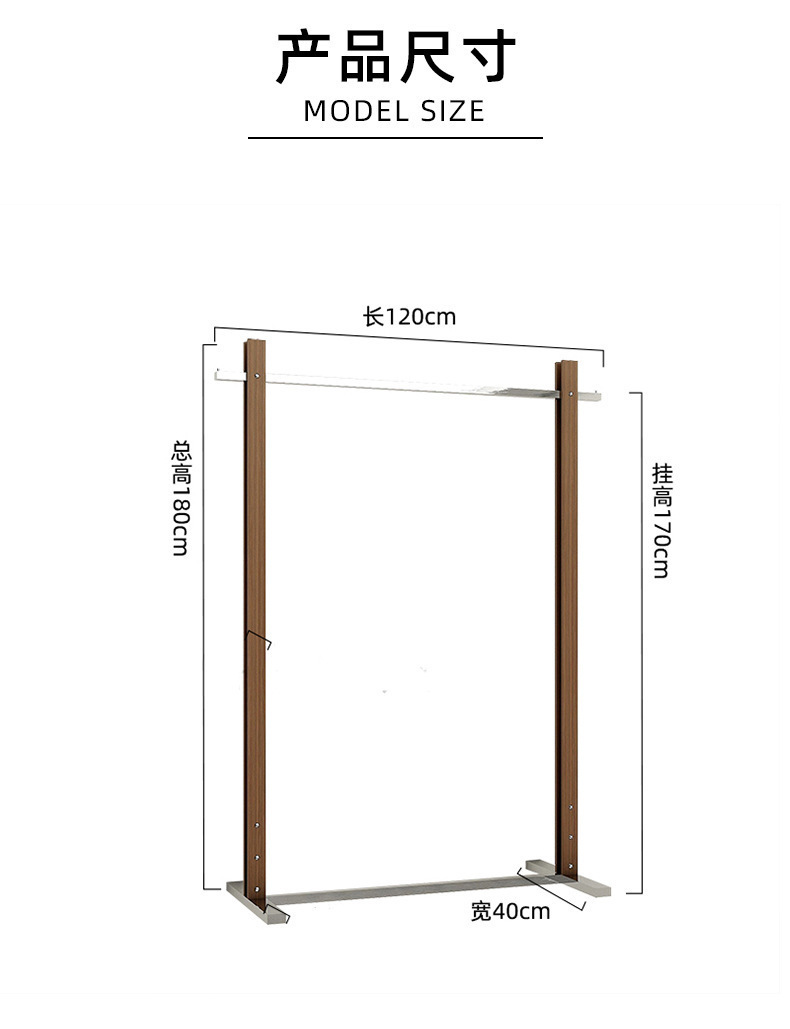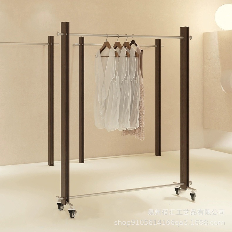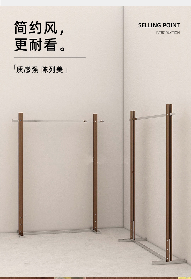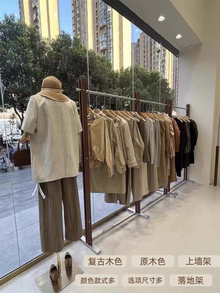 服装店展示架落地式不锈钢胡桃色陈列架女装货架中古风挂衣陈列架