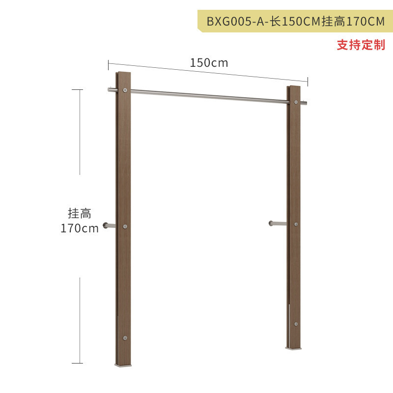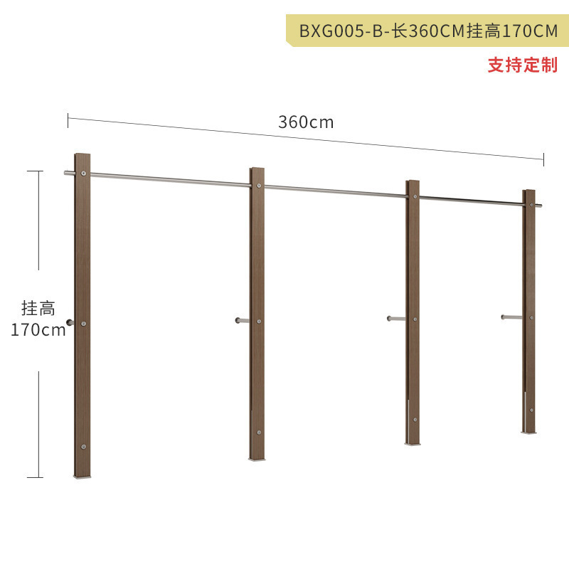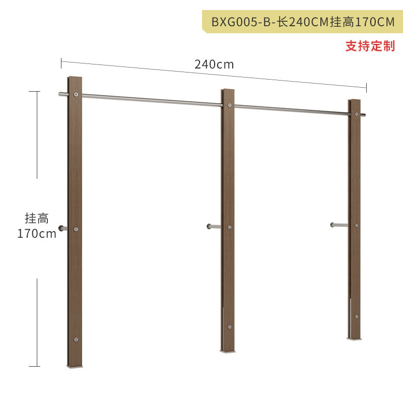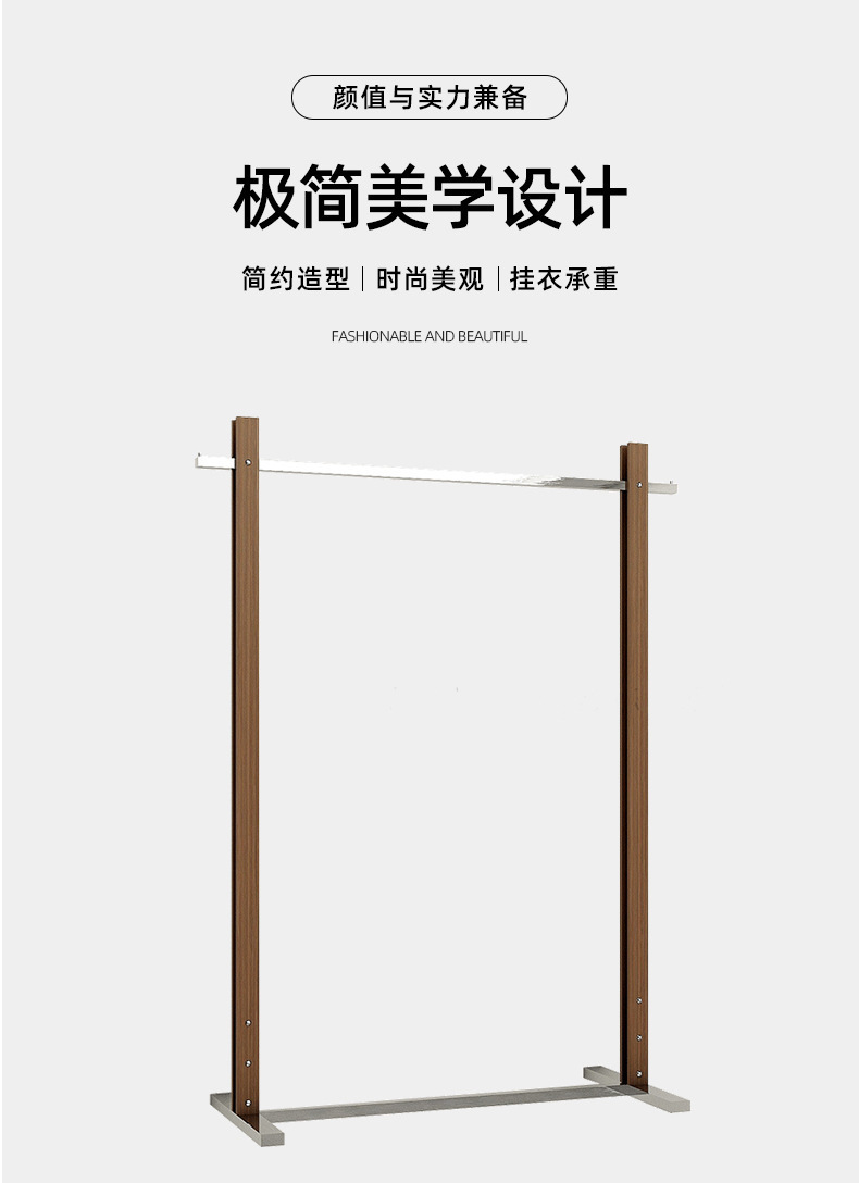 服装店展示架落地式不锈钢仿胡桃木色陈列架女装货架中古风挂衣架