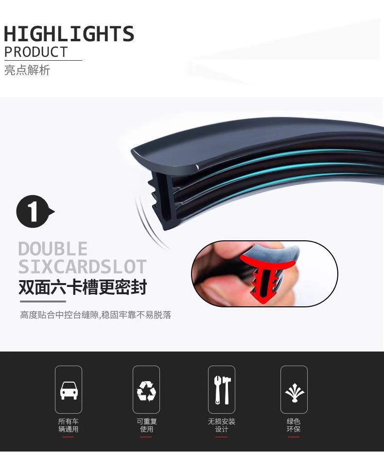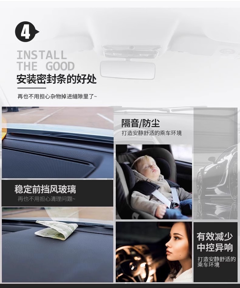 汽车中控仪表台隔音密封胶条车内饰降噪防尘条前挡风玻璃缝隙胶条