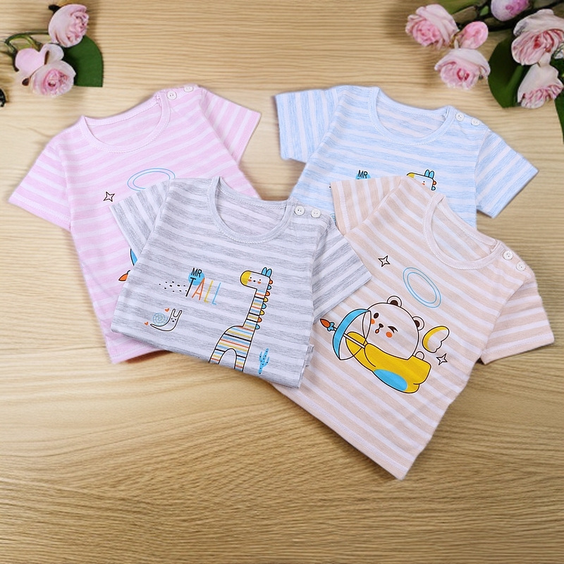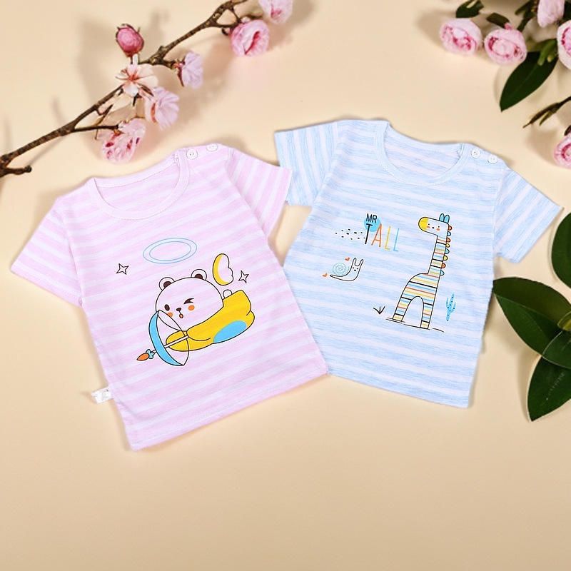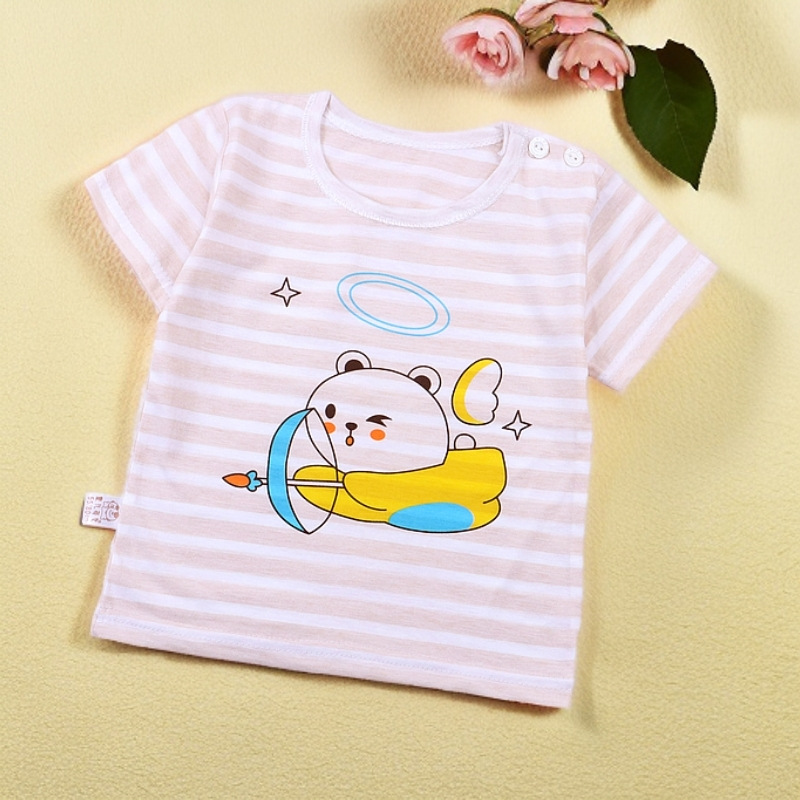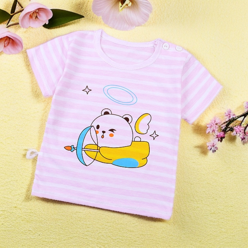 ベビー半袖 Tシャツ無地綿夏幼児肩ボタン夏服子供ホーム服通気性薄いトップ