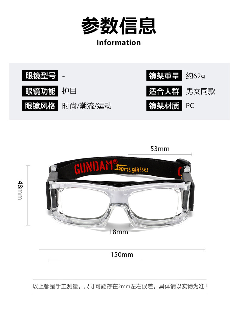 篮球运动眼镜跑步骑行高尔夫垂钓足球护目镜减震撞击护眼男防撞