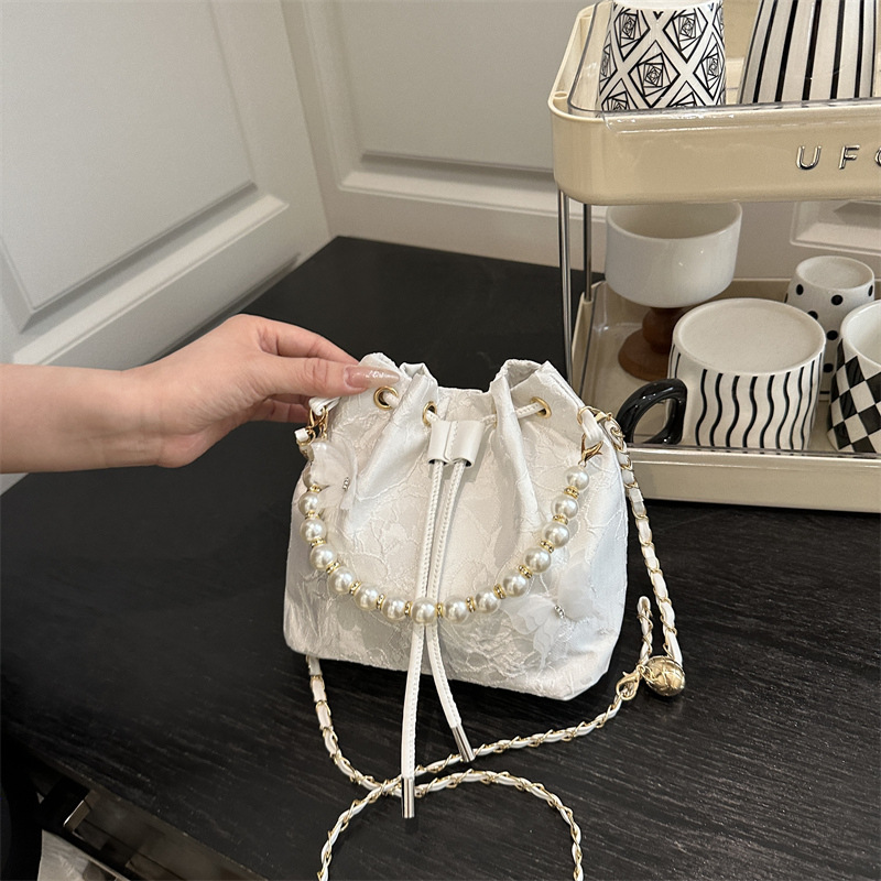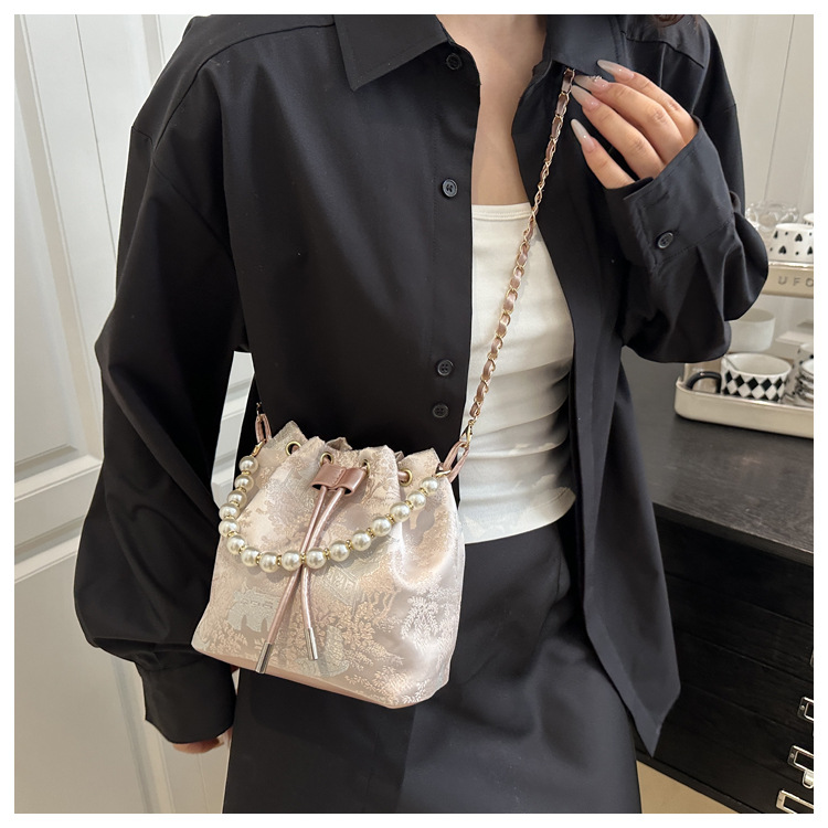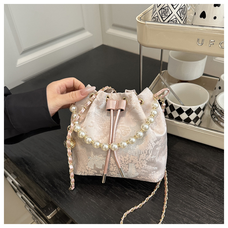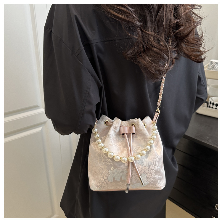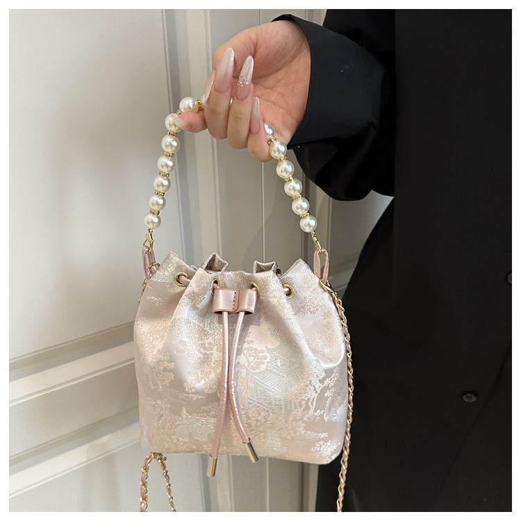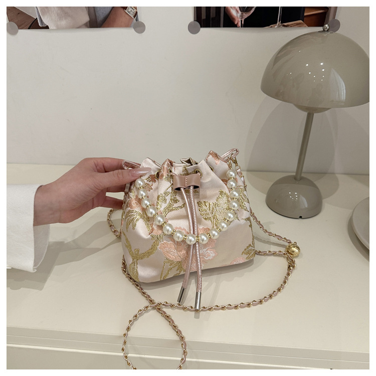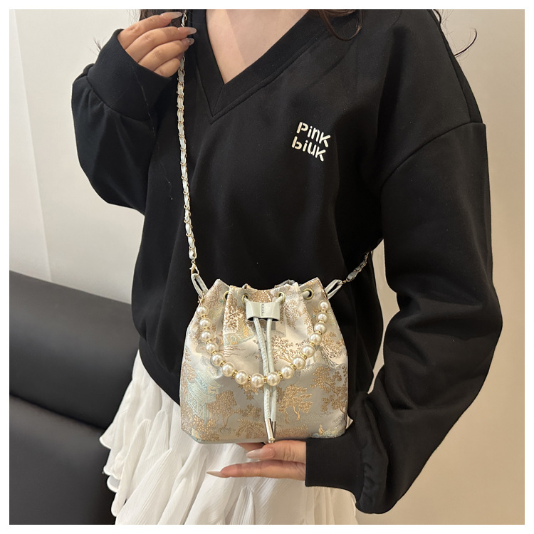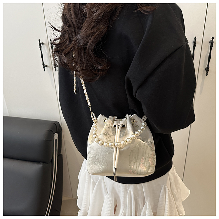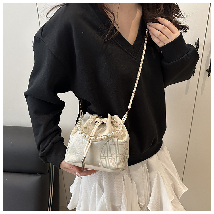 真珠チェーンのバケツを持って女性2025夏の新中国式刺繍シングルバッグ