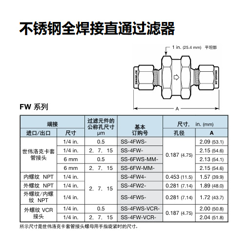 SS-4FWS-05 スワゲロック ステンレスフル溶接ストレートフィルター