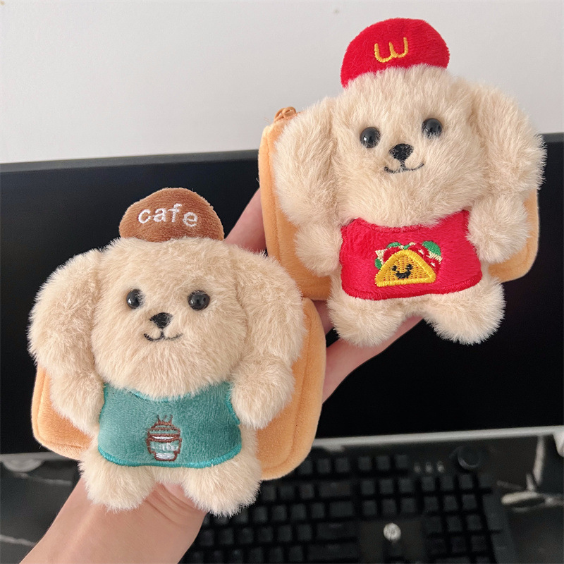 麦当劳小狗零钱包可爱毛绒方形卡包ins风便携随身带卡通迷你小包