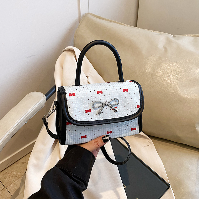 韩版小众蝴蝶结包包女式2025新款单肩斜挎包高颜值波点手提小方包