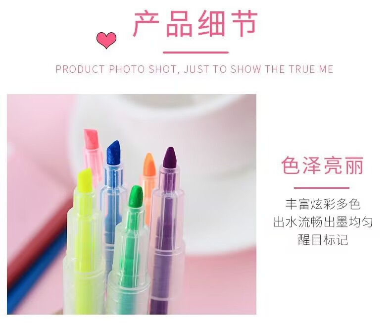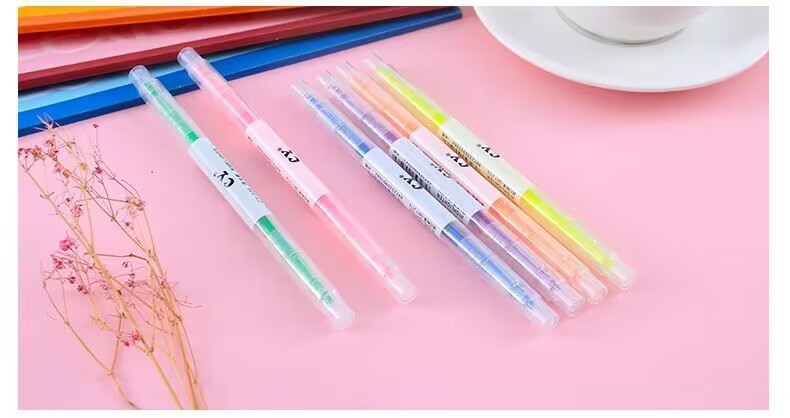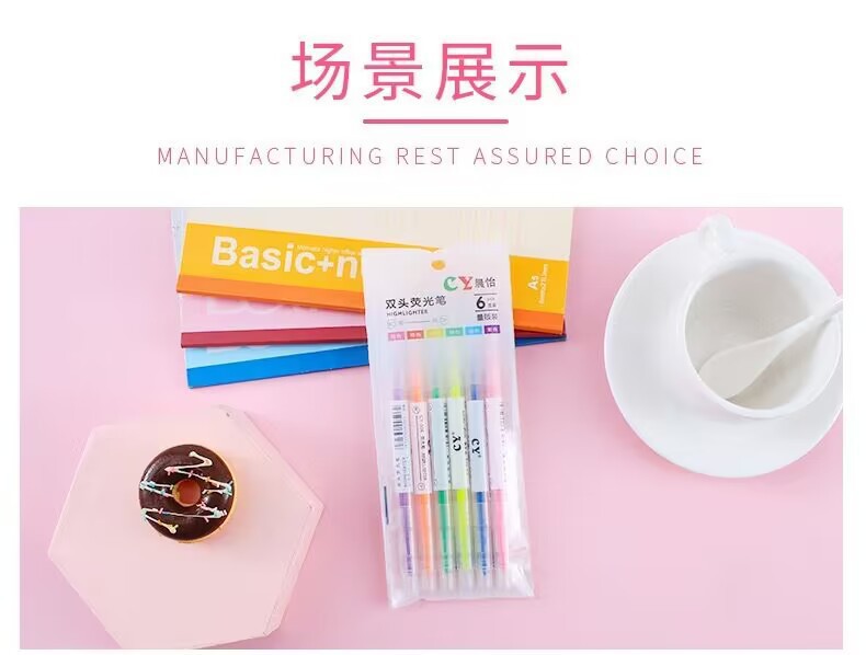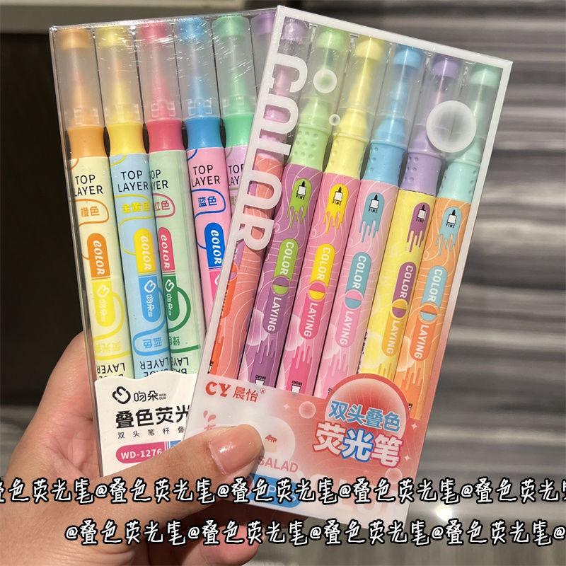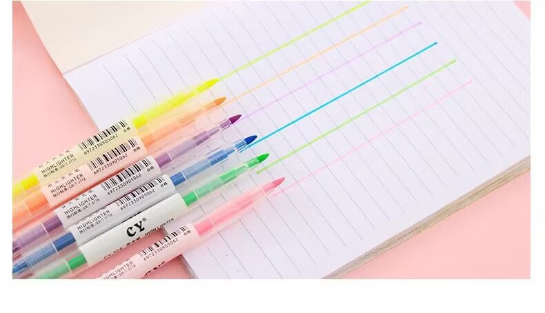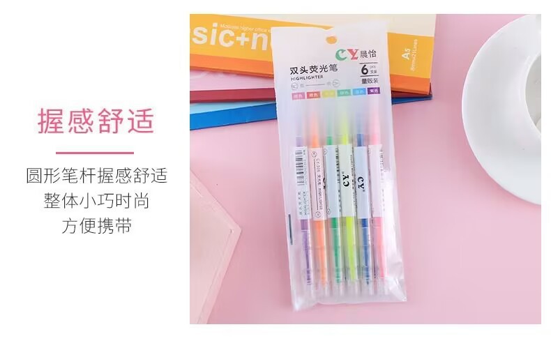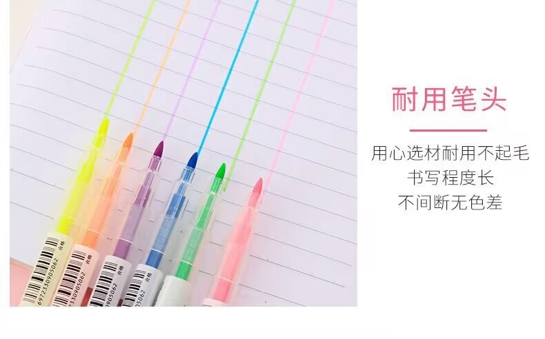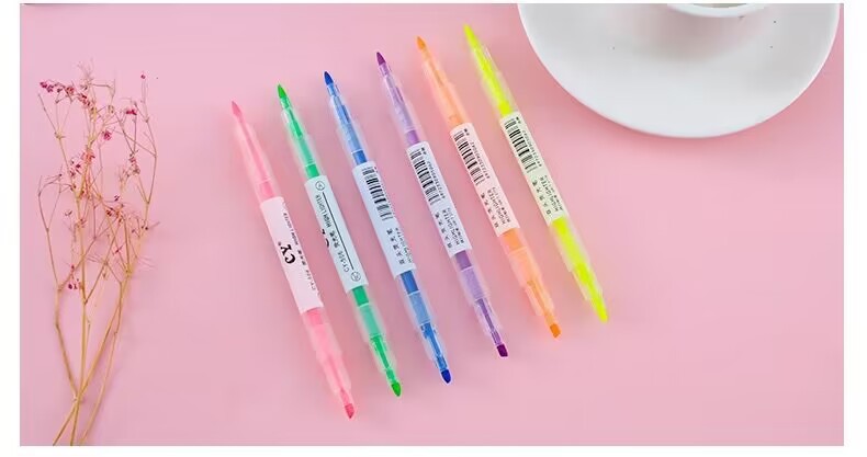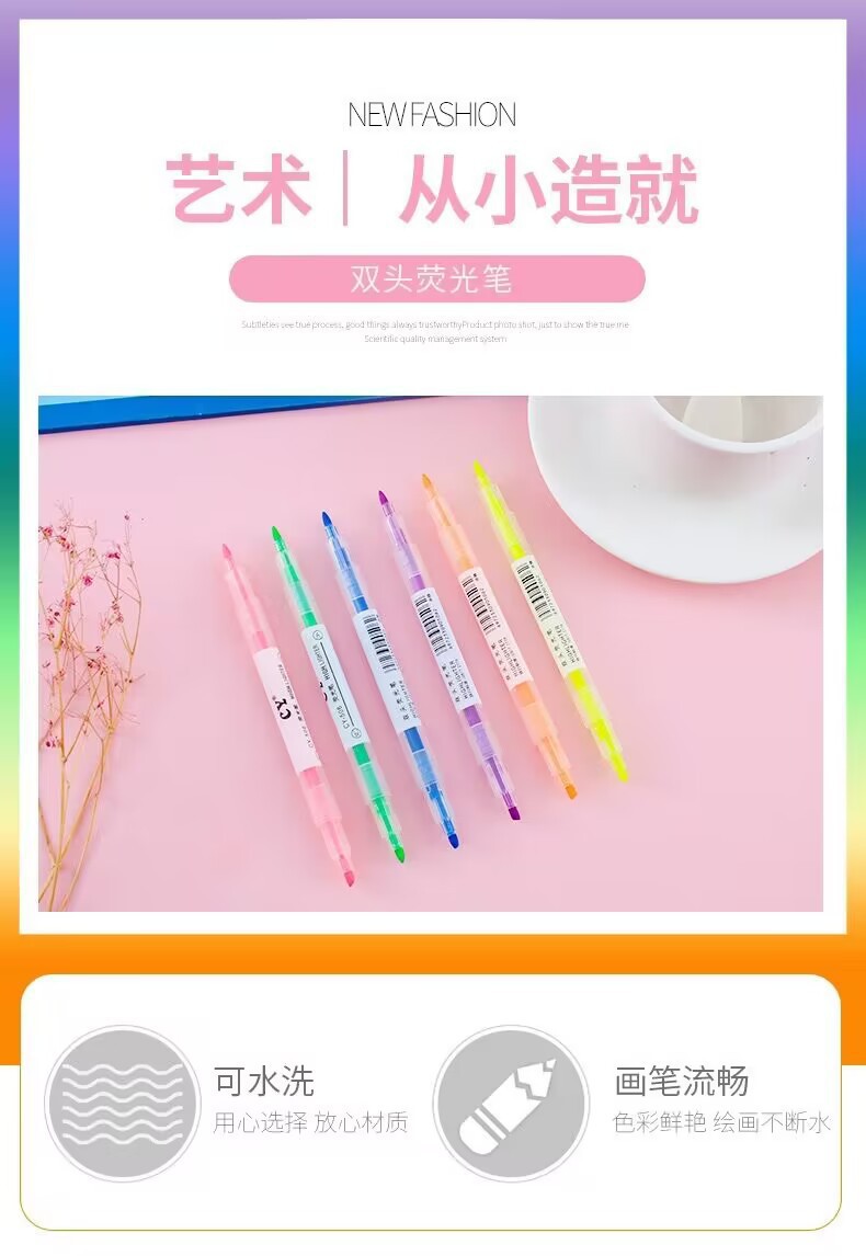 クリエイティブダブルカラー蛍光ペン6本入学生文房具学習用品マーカー