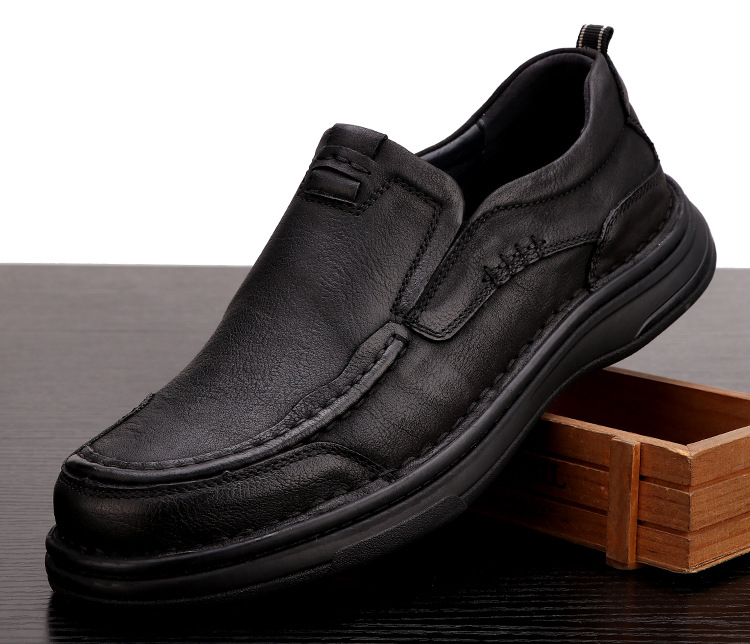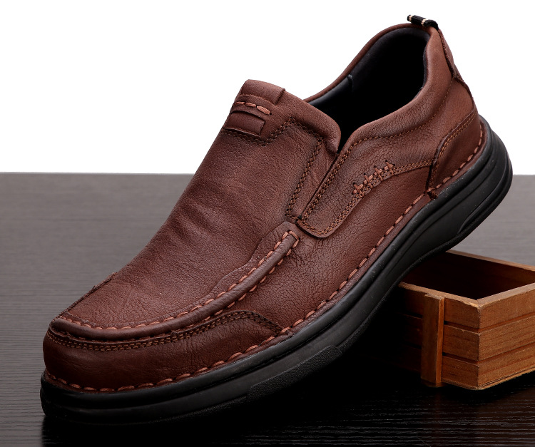 春と秋の紳士靴、本革カジュアル革靴、メンズ通気性ソフトソールスリッポンドライビングシューズ、厚底ワイドヘッド多用途ローファー