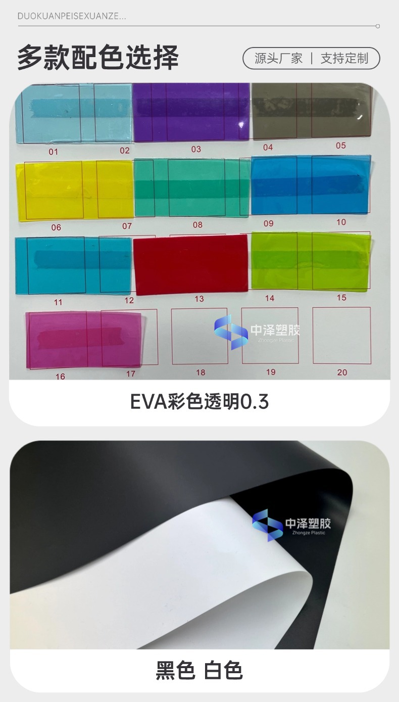 EVAフィルム透明膜フロスト半透PEVA黒白色シルバーグレー環境保護包装レインコート防水evaフィルム