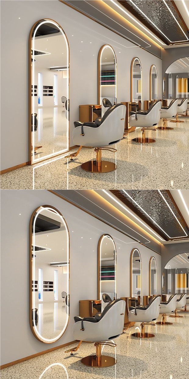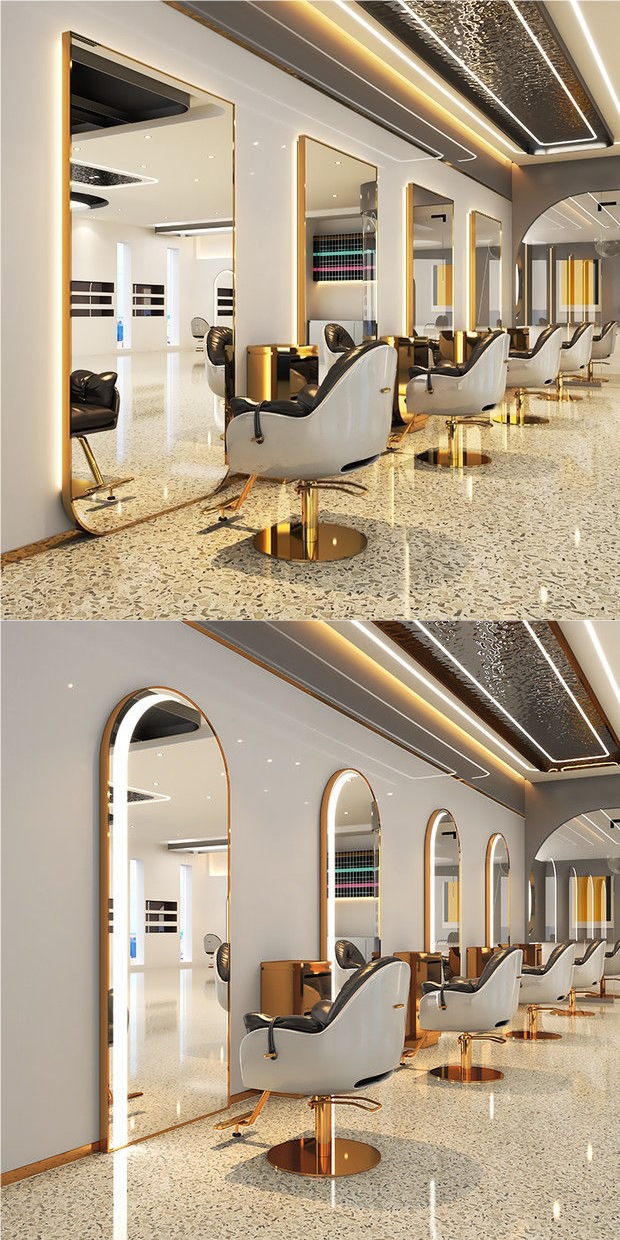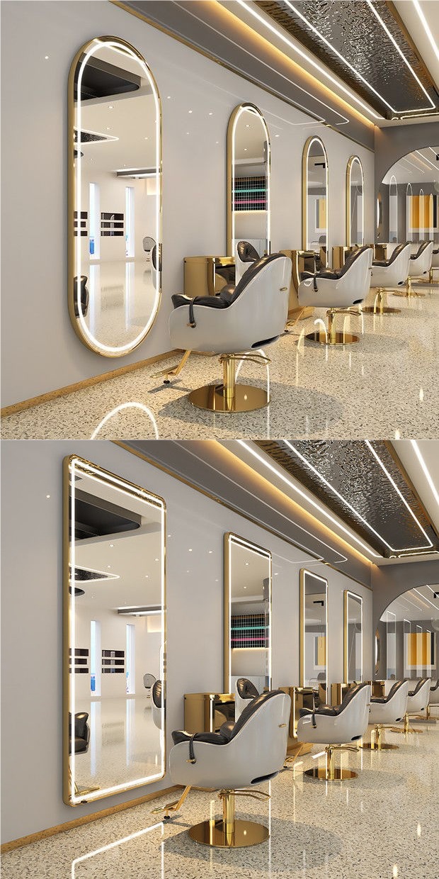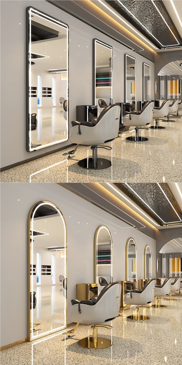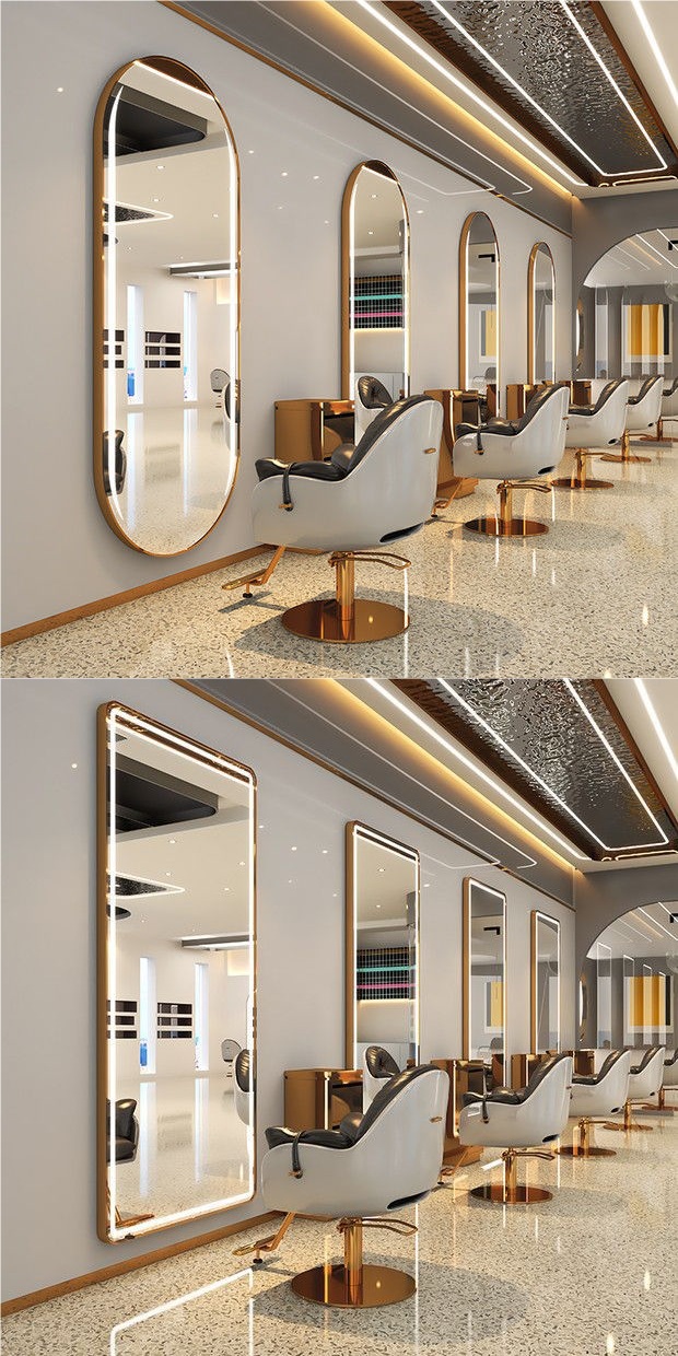 理髪店の鏡の廊下の専用の美髪の鏡台は明かりをつけて壁の美容の鏡を掛けます。