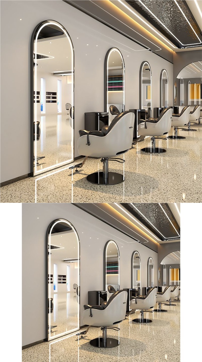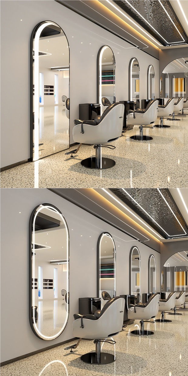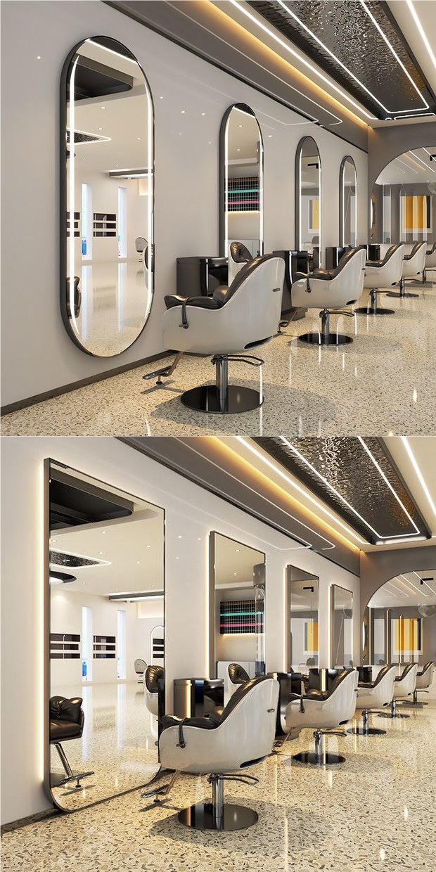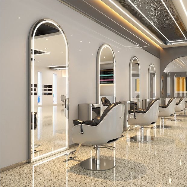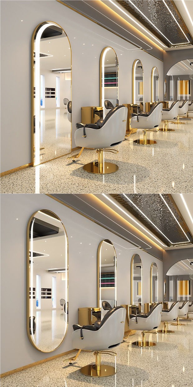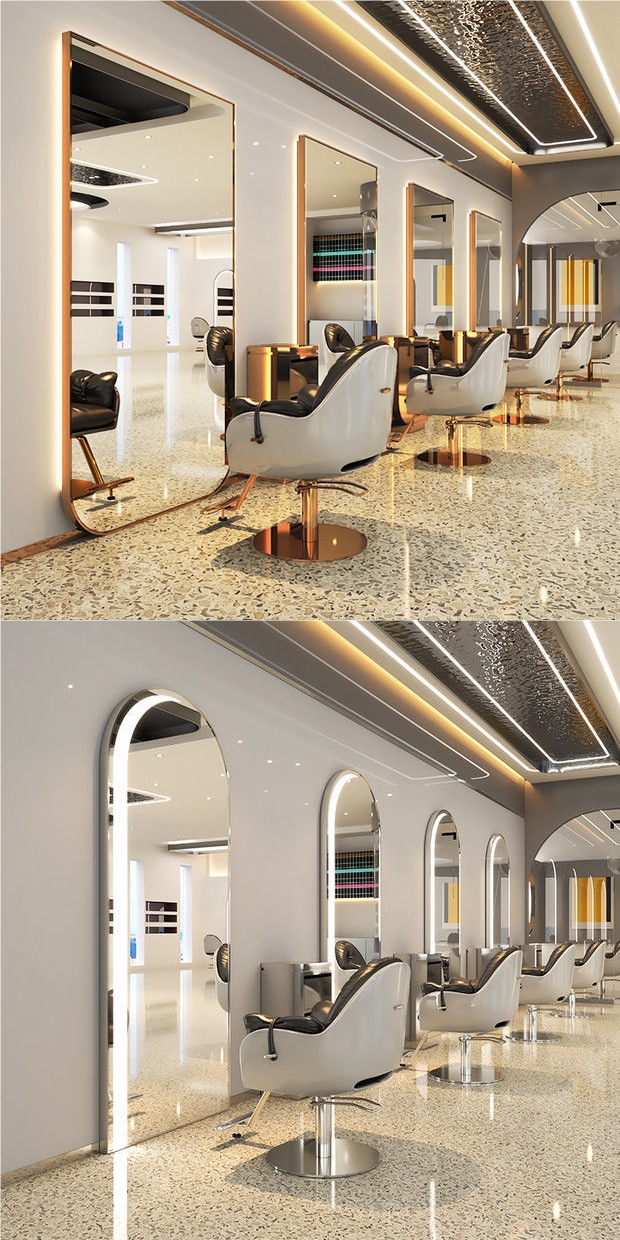 理髪店の鏡の廊下の専用の美髪の鏡台は明かりをつけて壁の美容の鏡を掛けます。