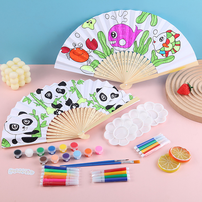 漫画DIY落書き扇子学生手作り塗り絵円形扇子幼稚園知育奨励プレゼント