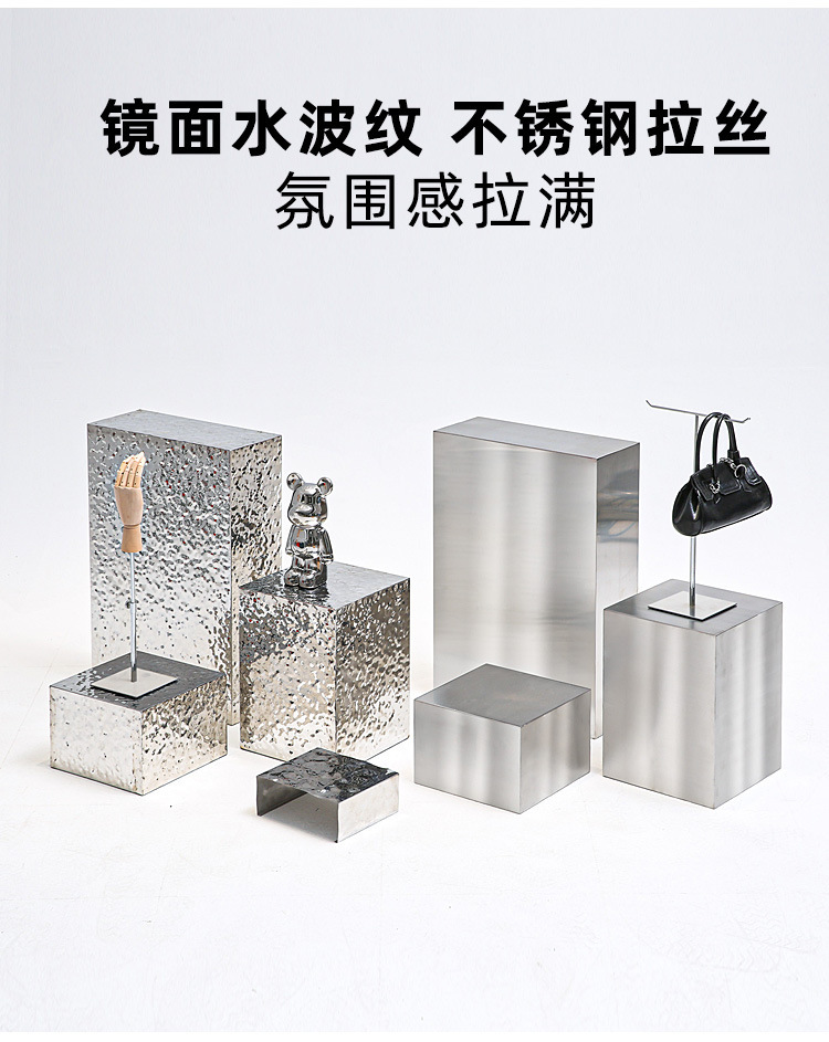 水波纹立体不锈钢拉丝装饰摆件陈列中岛流水台服装模特展示地台架
