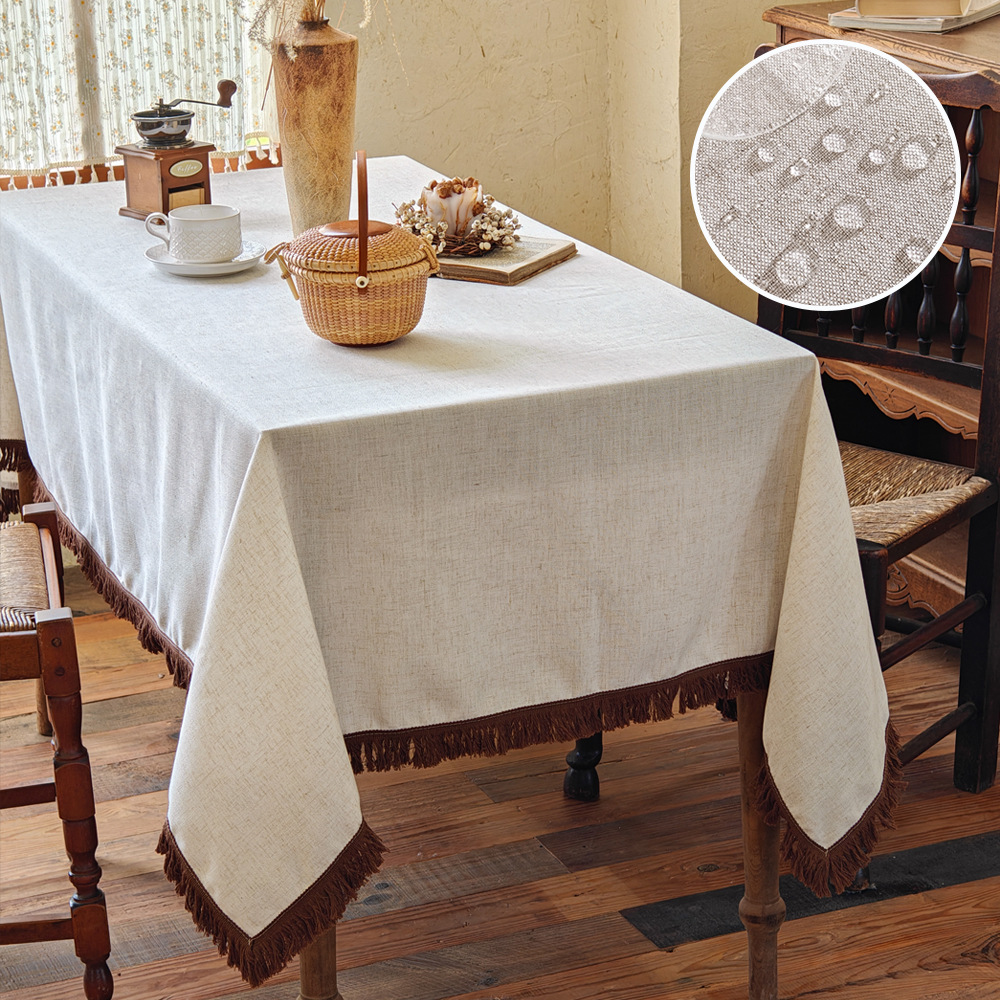 棉麻风防水桌布亚麻涤轻奢氛围感新中式纯色茶几台布长方形餐桌布