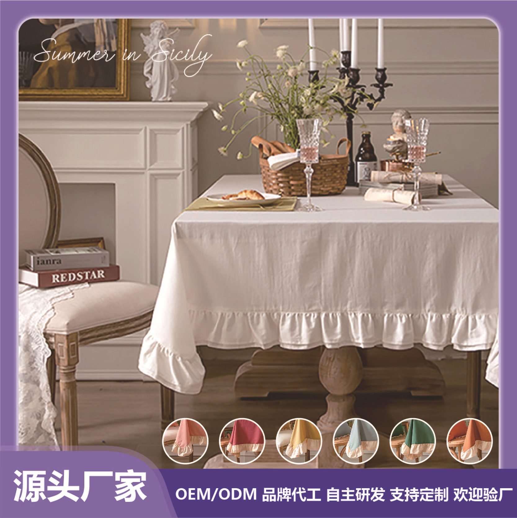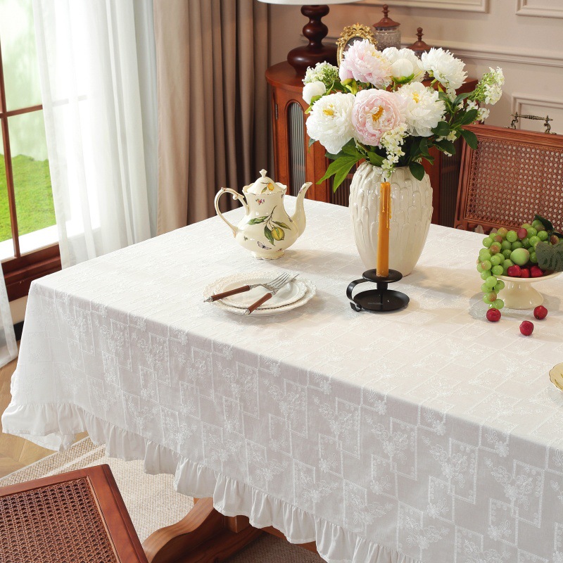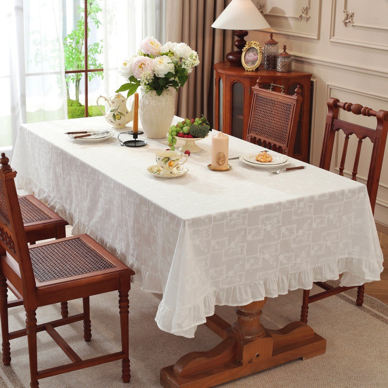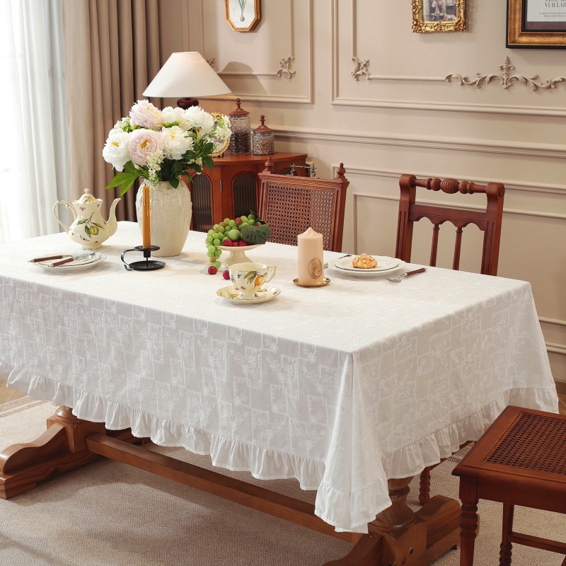 跨境轻奢简约餐桌台布高端客厅荷叶边茶几布艺白色褶边桌布长方形