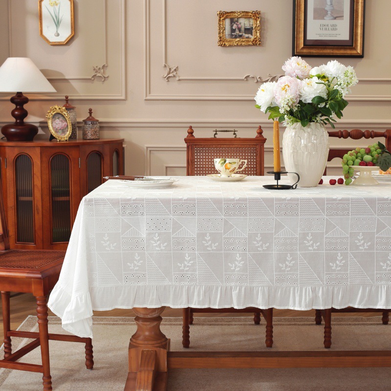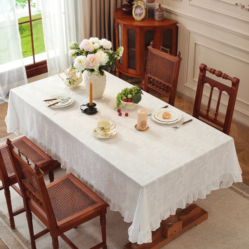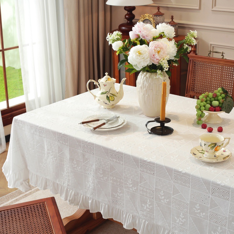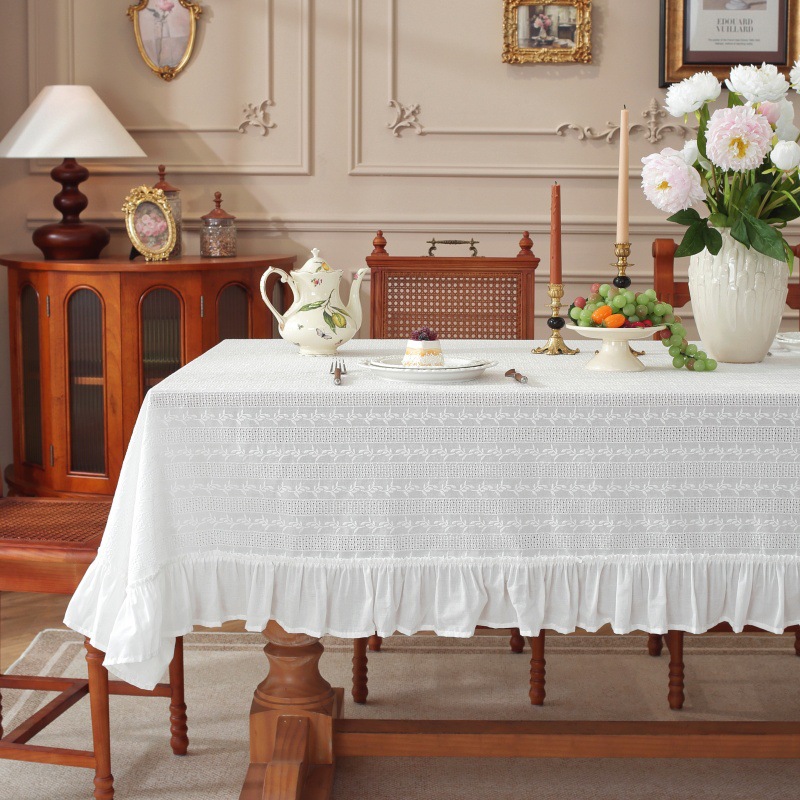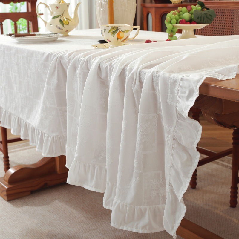 綿刺繍テーブルクロススカートプリーツ蓮の葉耳小清新シンプル無地コーヒーテーブルテーブルクロステーブルクロス