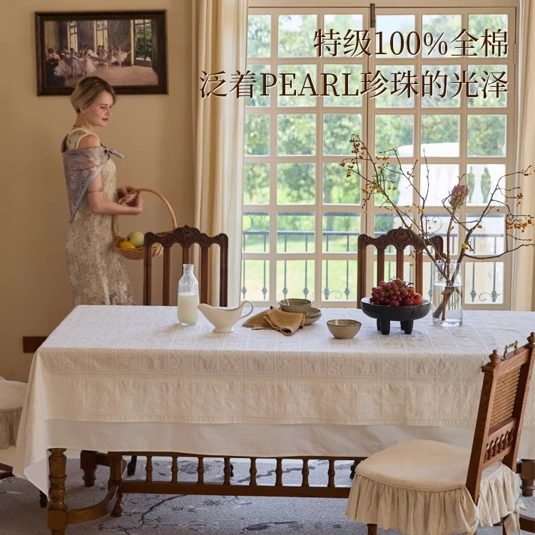 法式氛围感桌布立体提花纯色长方形餐桌台布茶几布桌布轻奢高级感