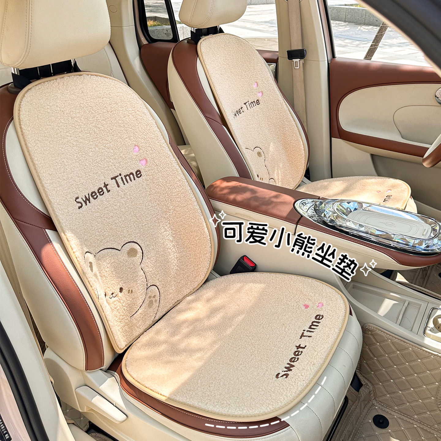 可爱小熊汽车坐垫冬季卡通车用内饰座垫毛绒保暖车载加厚座椅套