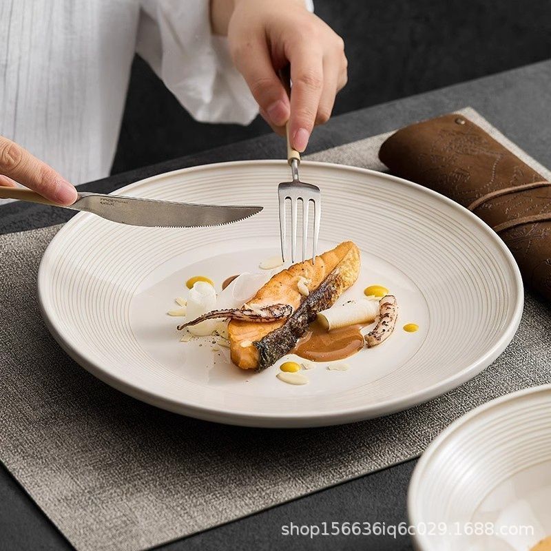 高級感のある冷菜皿のフランス式のストレートステーキ皿のレストランの簡単な食事の皿の魚の皿のホテルのシェフは皿の食器を並べます。