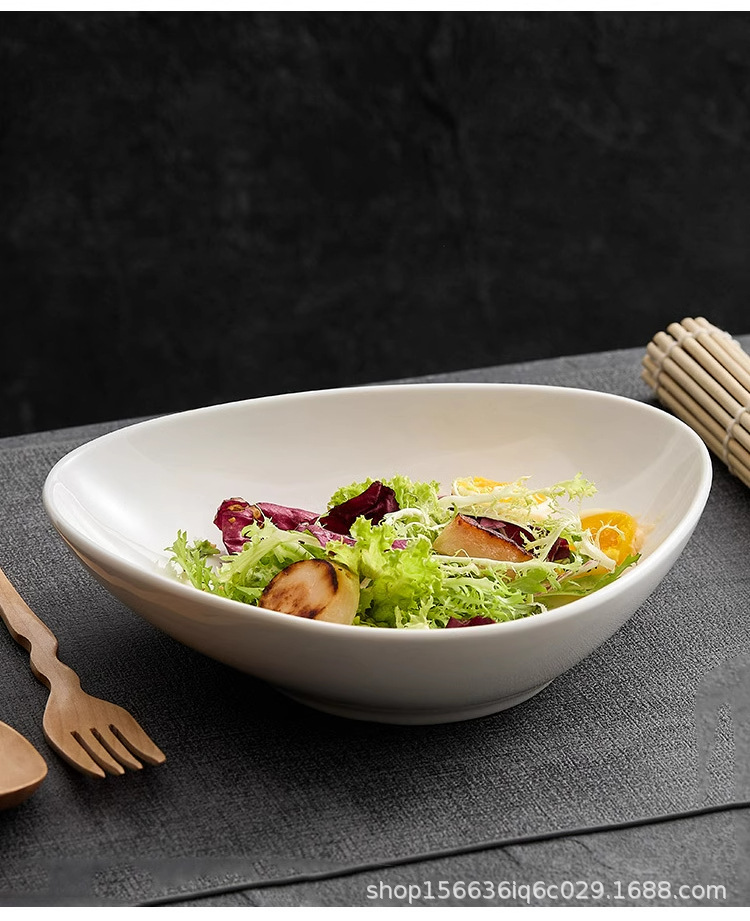 洋食の大きいサイズのスープの皿の家庭用の野菜の皿の白い食器の陶磁器の美しいサラダの碗の高級感のアイデアを深めます。