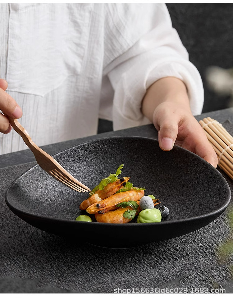 日本式創意料理皿子ins高級感麺料理皿家庭用陶磁器円飯深スープ皿深皿