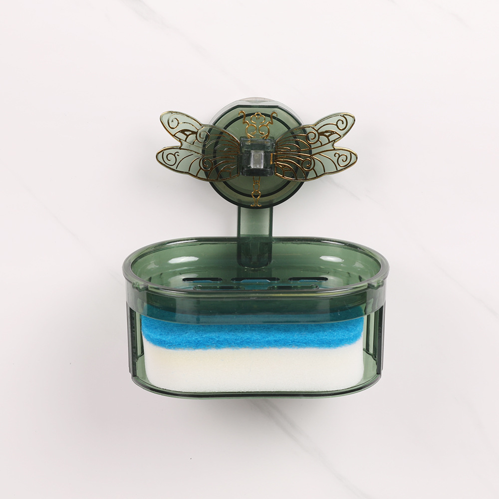 多用途のポータブル蝶吸盤ソープボックス家庭用バスルームパンチフリードレンボックス壁掛け水のたまりのない収納ボックス
