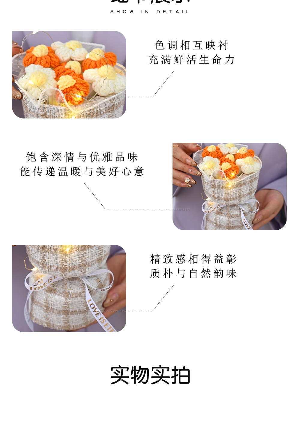 毛糸ひまわり編み花束完成品手編みバラ花束越境クリスマスバレンタインデーギフト卸売