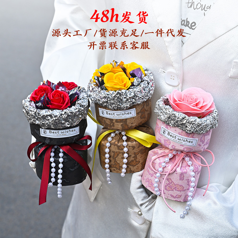 教師の日のギフトブーケ、造花、フェイクフラワー、ソープフラワー、手持ち花、中国のバレンタインデーのお土産、アクセサリー、越境卸売