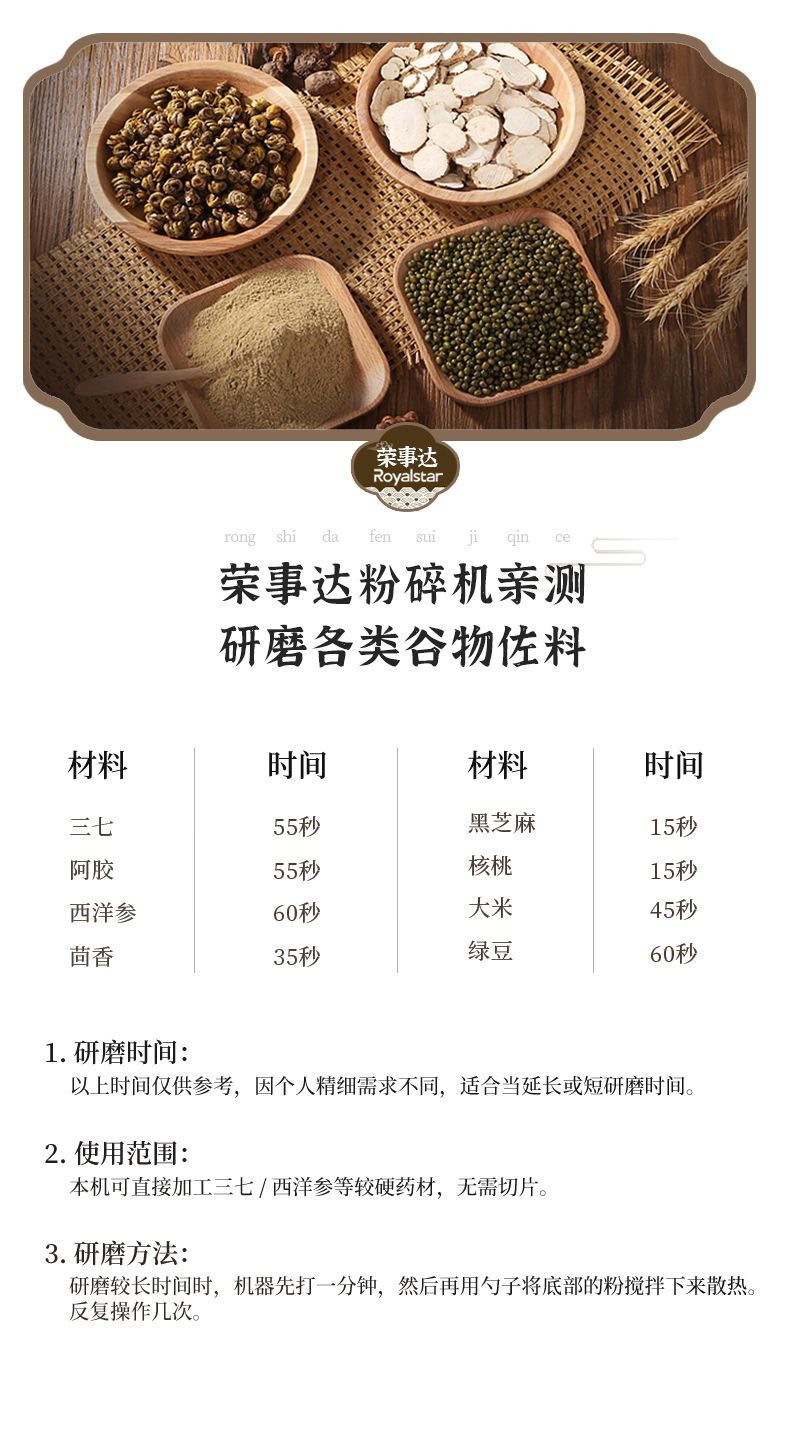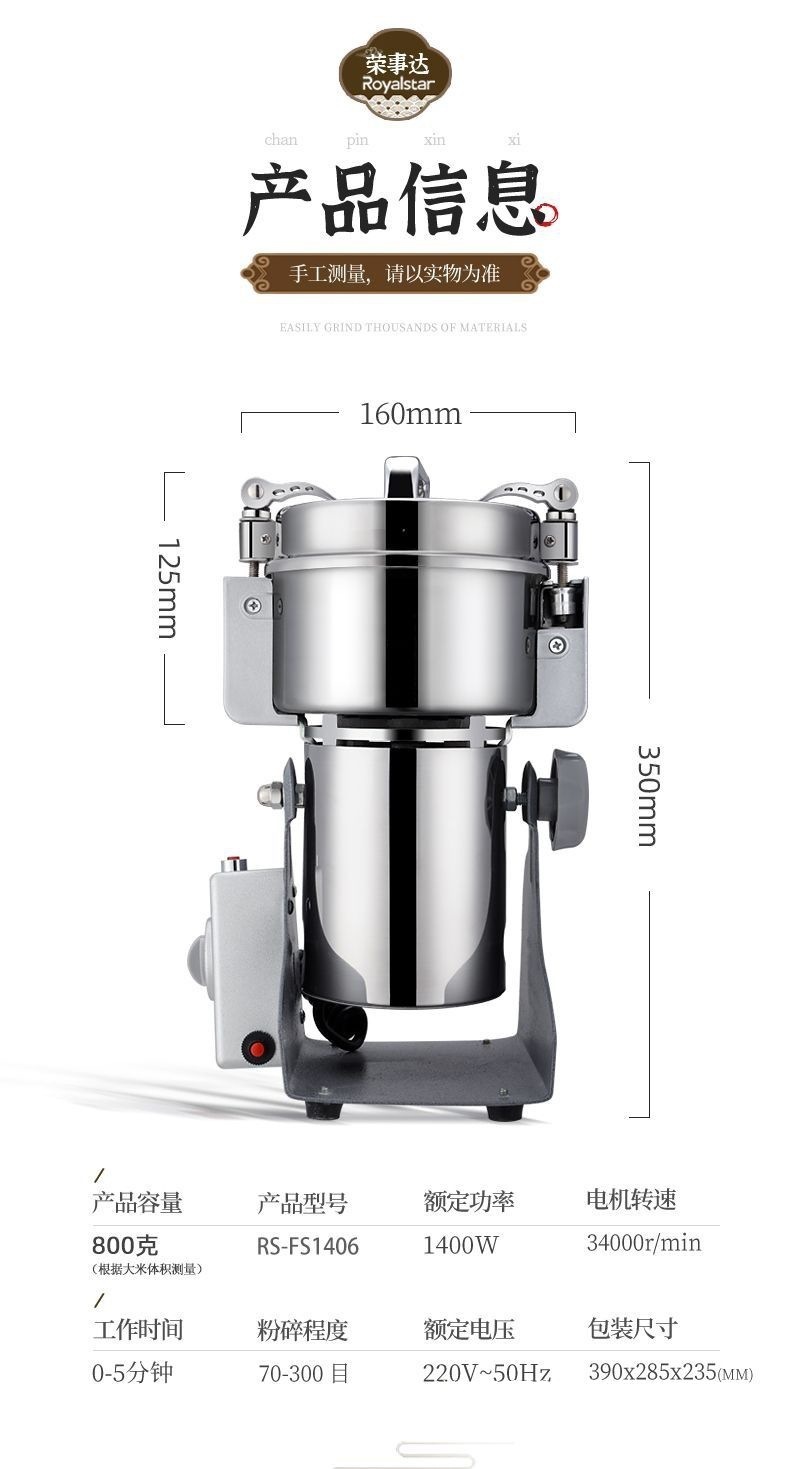 Royalstar 粉体機超微粉砕機家庭用小型粉砕機穀物商業粉砕機