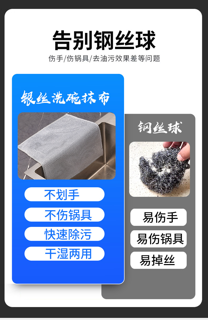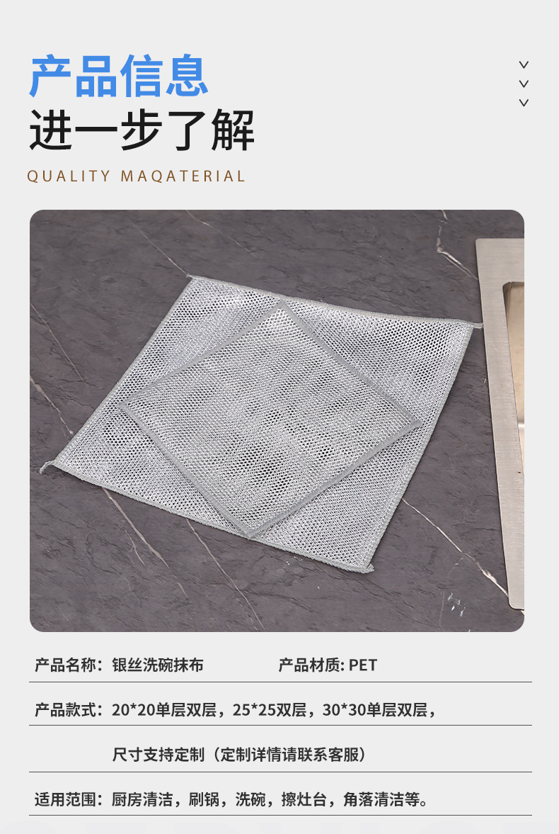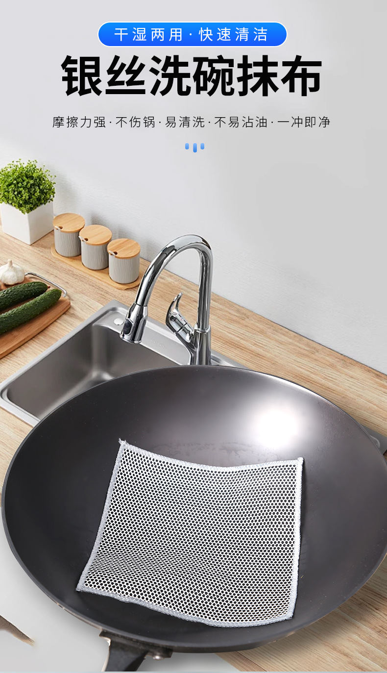 銀糸雑巾は油をつけないワイヤー雑巾家庭用食器洗浄キッチン清潔布百潔布両面銀糸雑巾