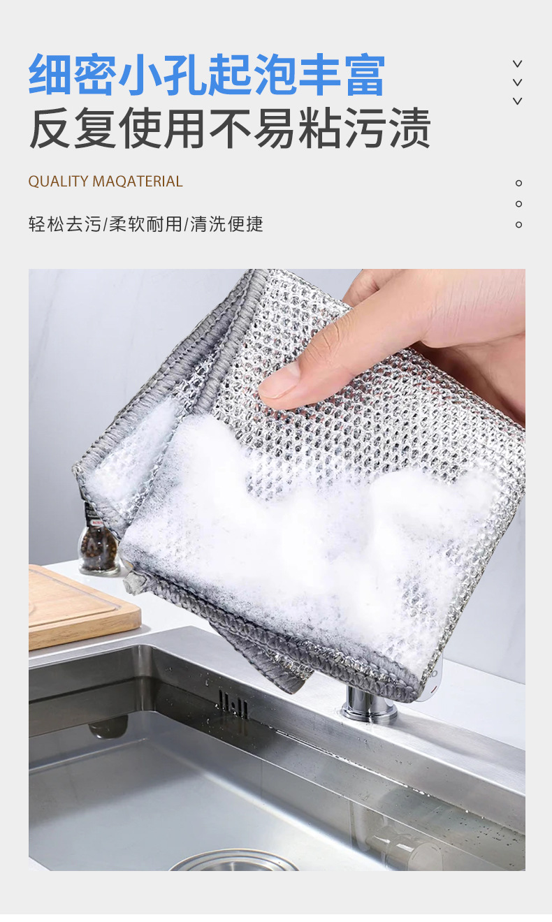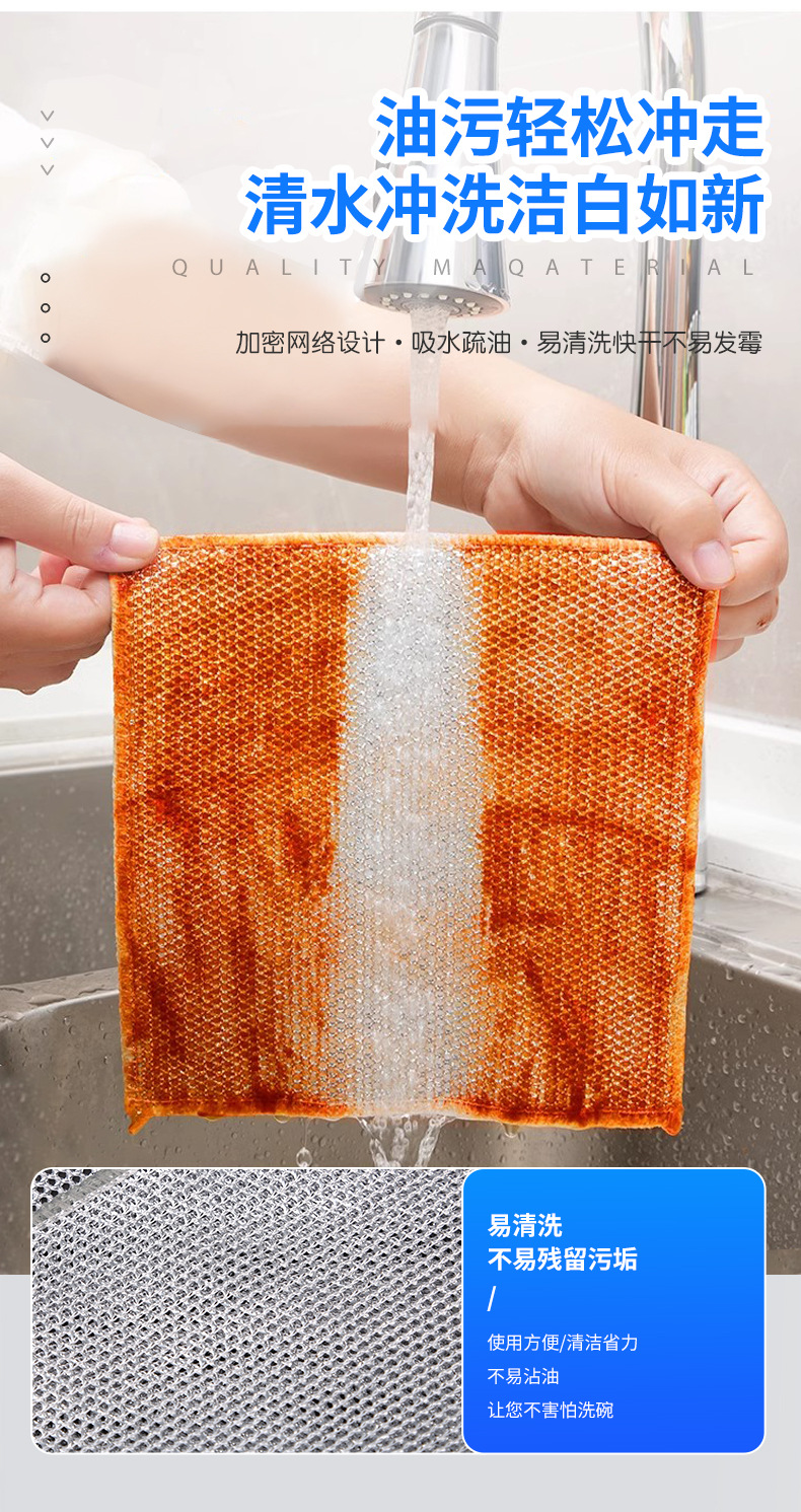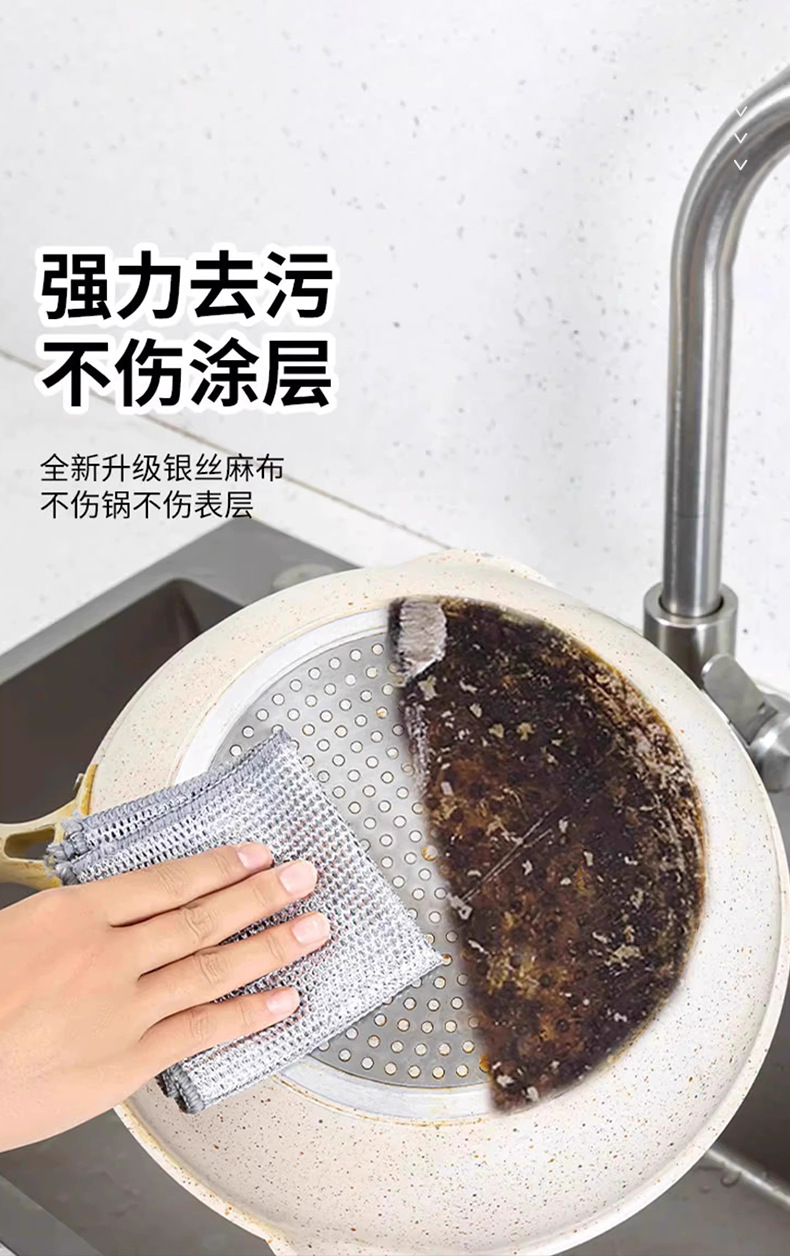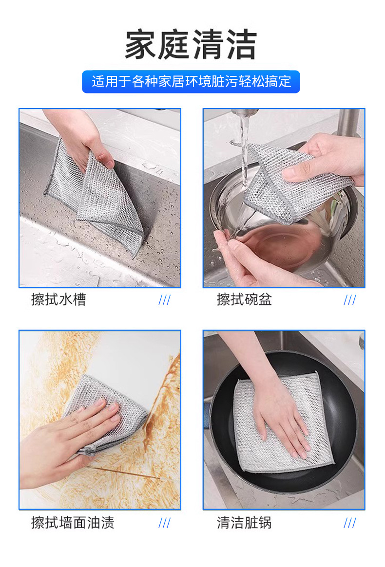 鋼線雑巾二層食器洗い布耐油除染家庭用キッチンクリーニング厚みのある両面銀線布耐久性