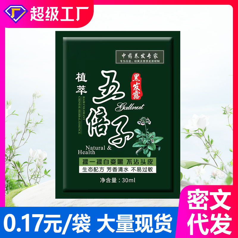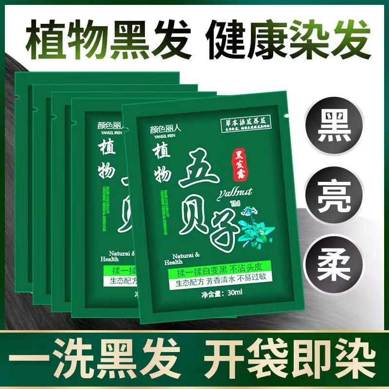 一洗五贝子泡泡植物纯黑色染发剂染发膏自己染盖白发正品黑染发膏