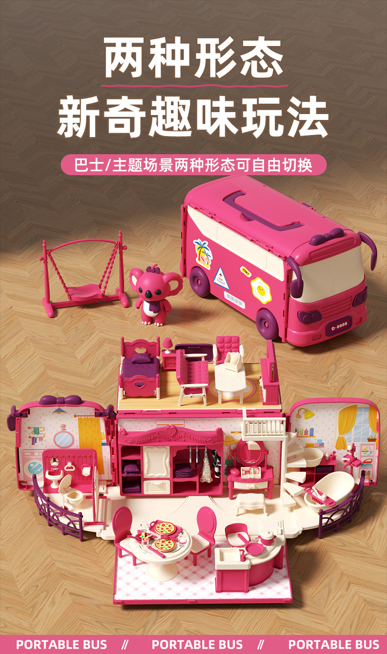 コアラ日記収納変形トレーラーバススクールバス人形屋DIY子供ままごと女の子おもちゃクロスボーダー
