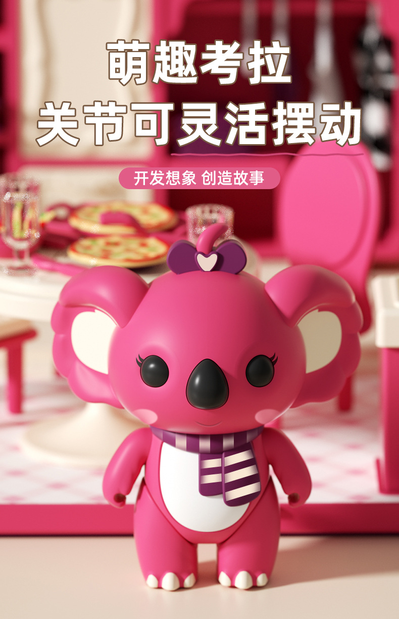 ピンクのRV + コアラ1匹,旅行用RV(フィギュアなし),ランダムな人形