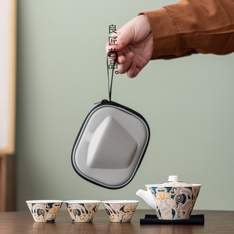 旅行茶器羊脂玉蓋碗一壺三杯の工夫茶器セット携帯用お茶入れのお土産のオーダーメイド
