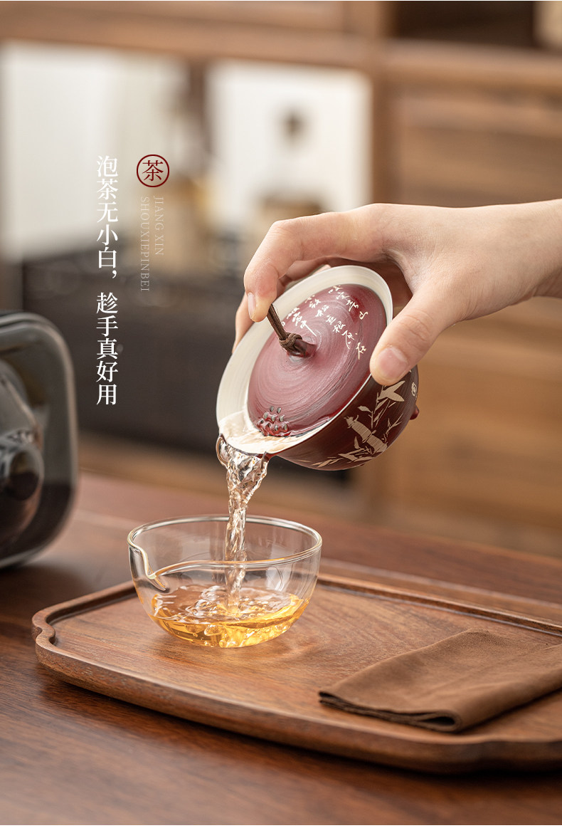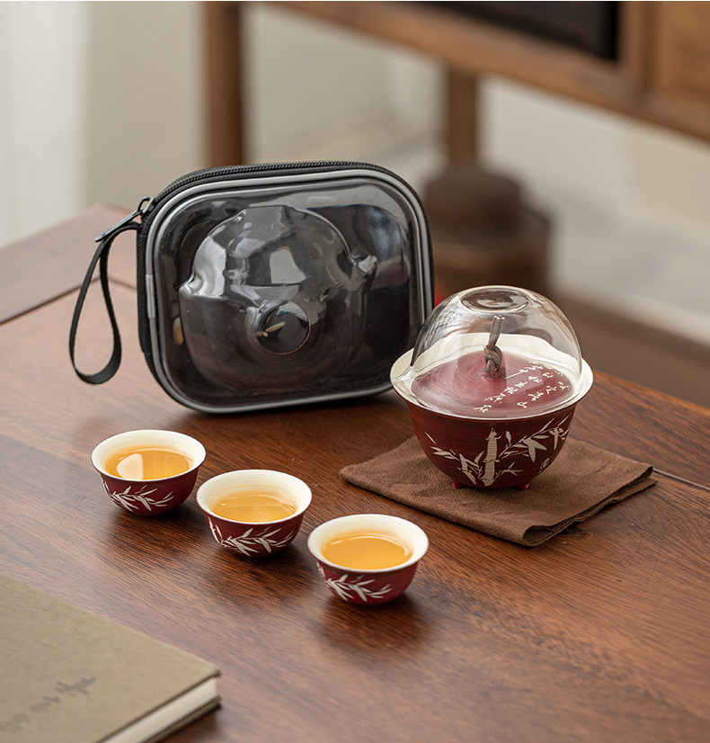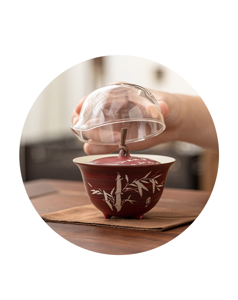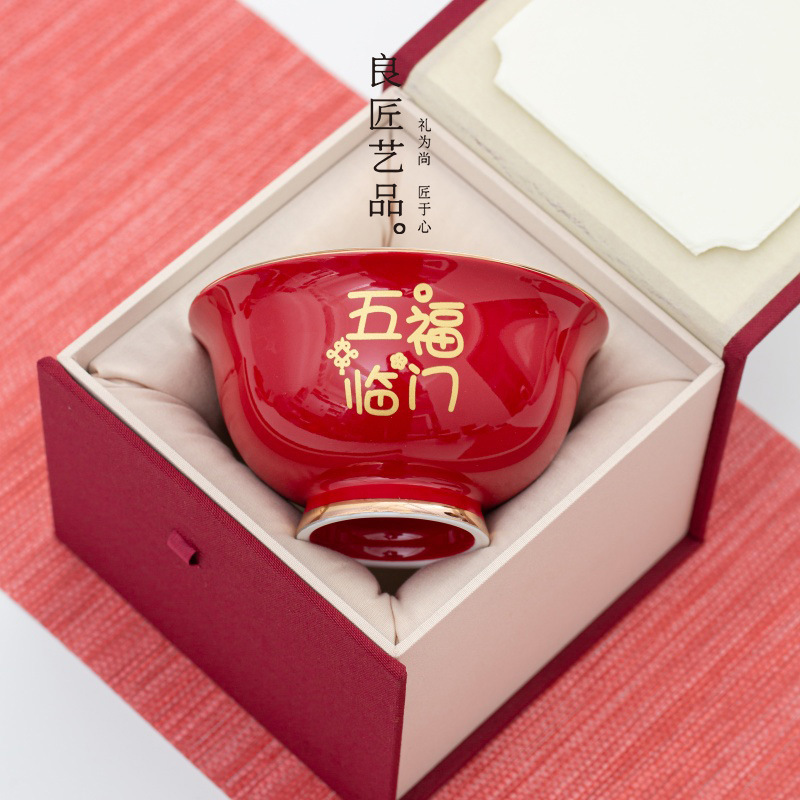 手描きサンザシレッドカバーボウルセットビジネスお土産アウトドア旅行カバーボウル男性カップセラミックカンフーティーセットカスタマイズ
