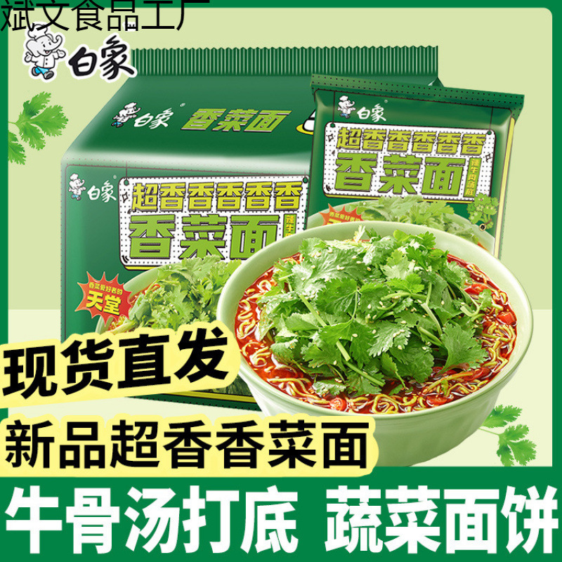 卸売ホワイトエレファントコリアンダーヌードルインスタントヌードル袋詰め怠惰な人インスタント夜食野菜ヌードルケーキ超香りコリアンダーヌードル全箱