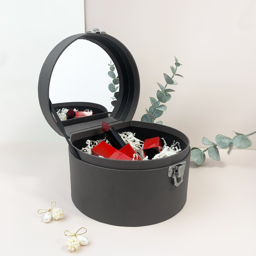クロスボーダービジネスアーチ型ブラックミラー付きデュアルユースメイクアップギフトボックスジュエリー収納ボックス在庫あり