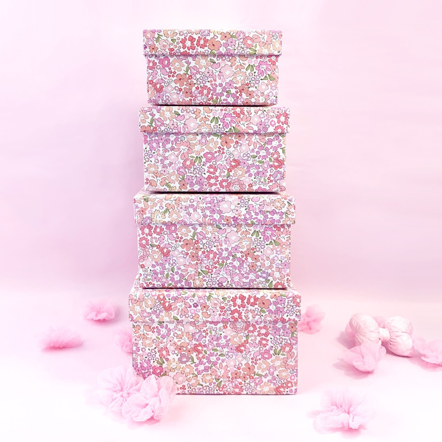 新しい小花柄スクエアボックスセット 4 ギフトボックス収納ボックス工場直販在庫あり