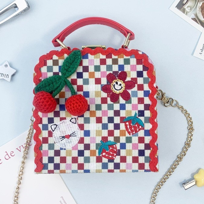 国境を越えた売れ筋の子供用カラフルなチェッカーチェリークロスボディショルダーバッグハンドバッグ工場直販在庫あり