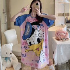 ゆったりした寝スカート夏の女性半袖かわいいアニメネット赤いパジャマ女性夏の女性春秋タイプの家庭服