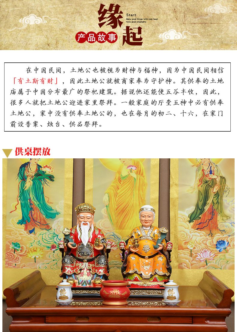 卸売り土地の公の土地の婆は神像の彩色絵の仏像を供えて福徳正君の地主の財神の仏像を並べます。