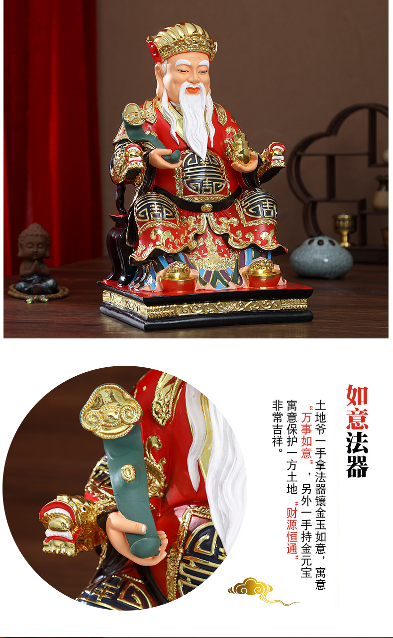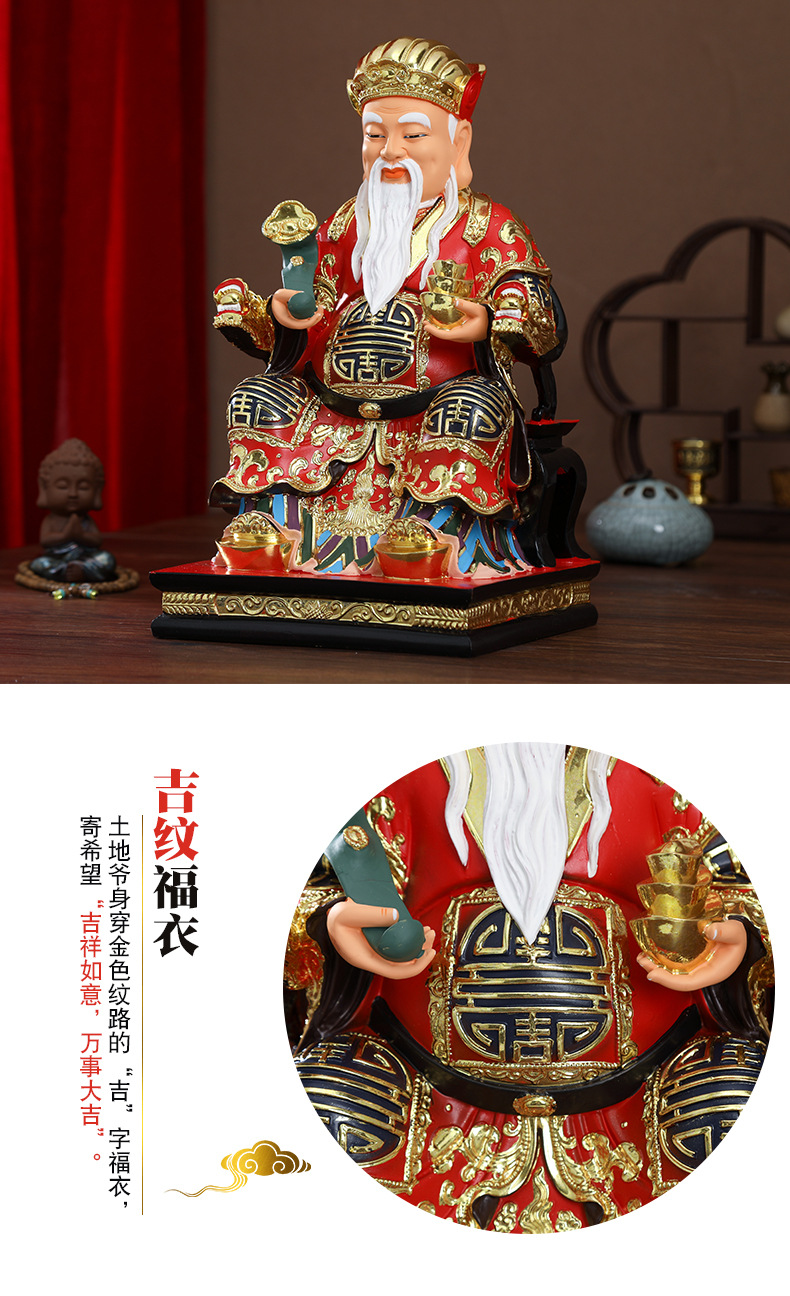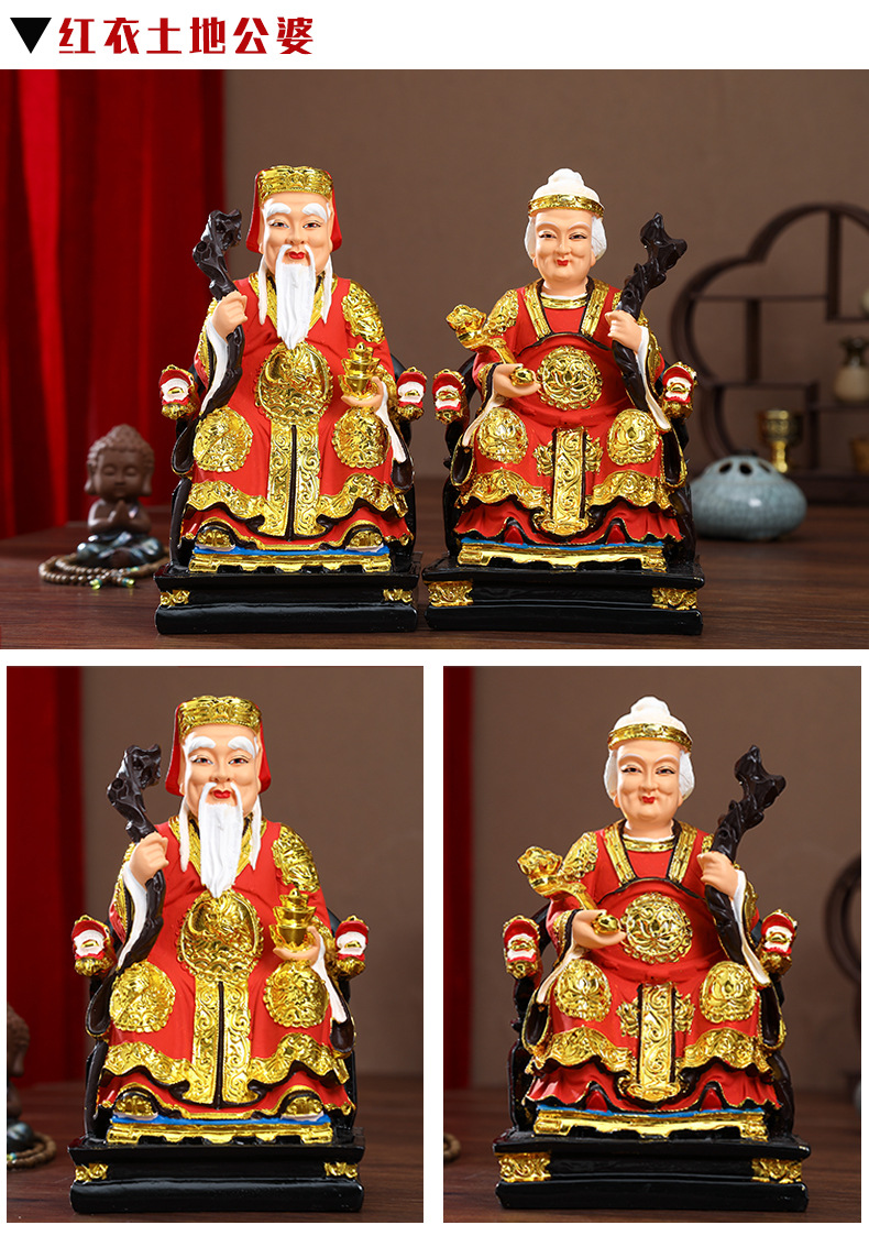 家庭用土地の公の土地のおばあさんの赤い服の土地のおばあさんの置物の主な財神の土地のおじいさんの土地の乳の仏像
