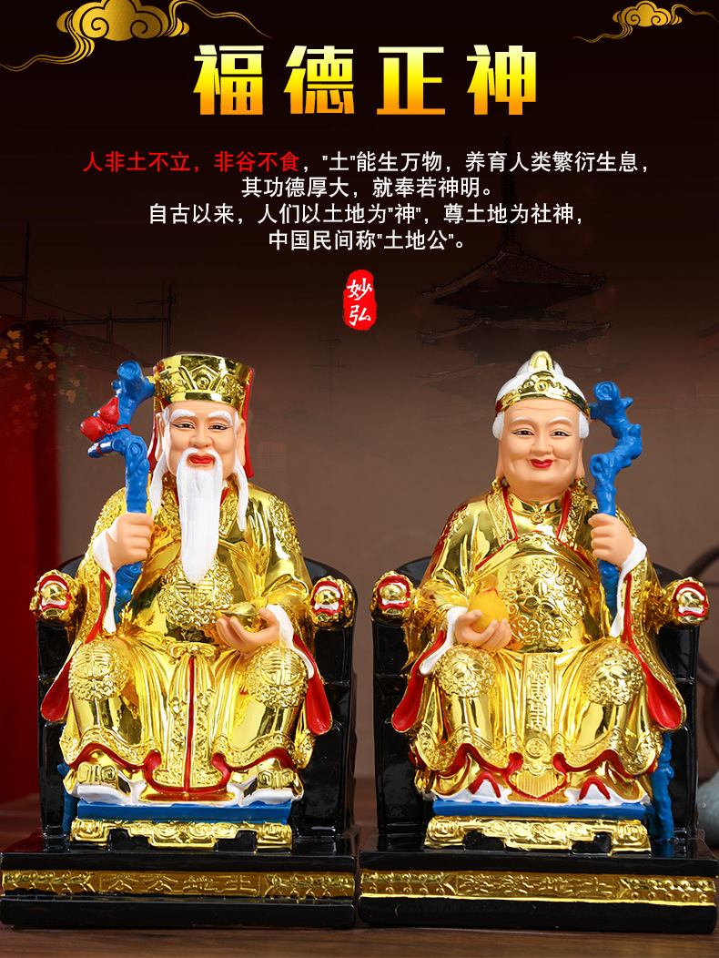 卸売りの土地の公の土地のおばあさんの像は件の福徳正君の地主の財神の土地のおじいさんの土地の乳の仏像を並べます。