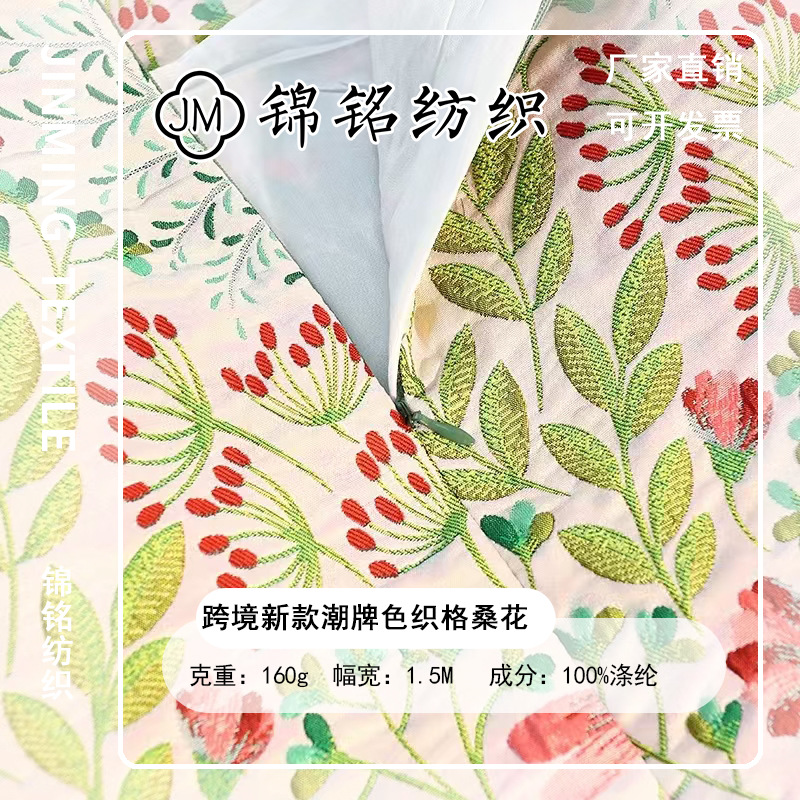 跨境新款新中式布料色织格桑花提花面料高定复古风旗袍马面裙上衣