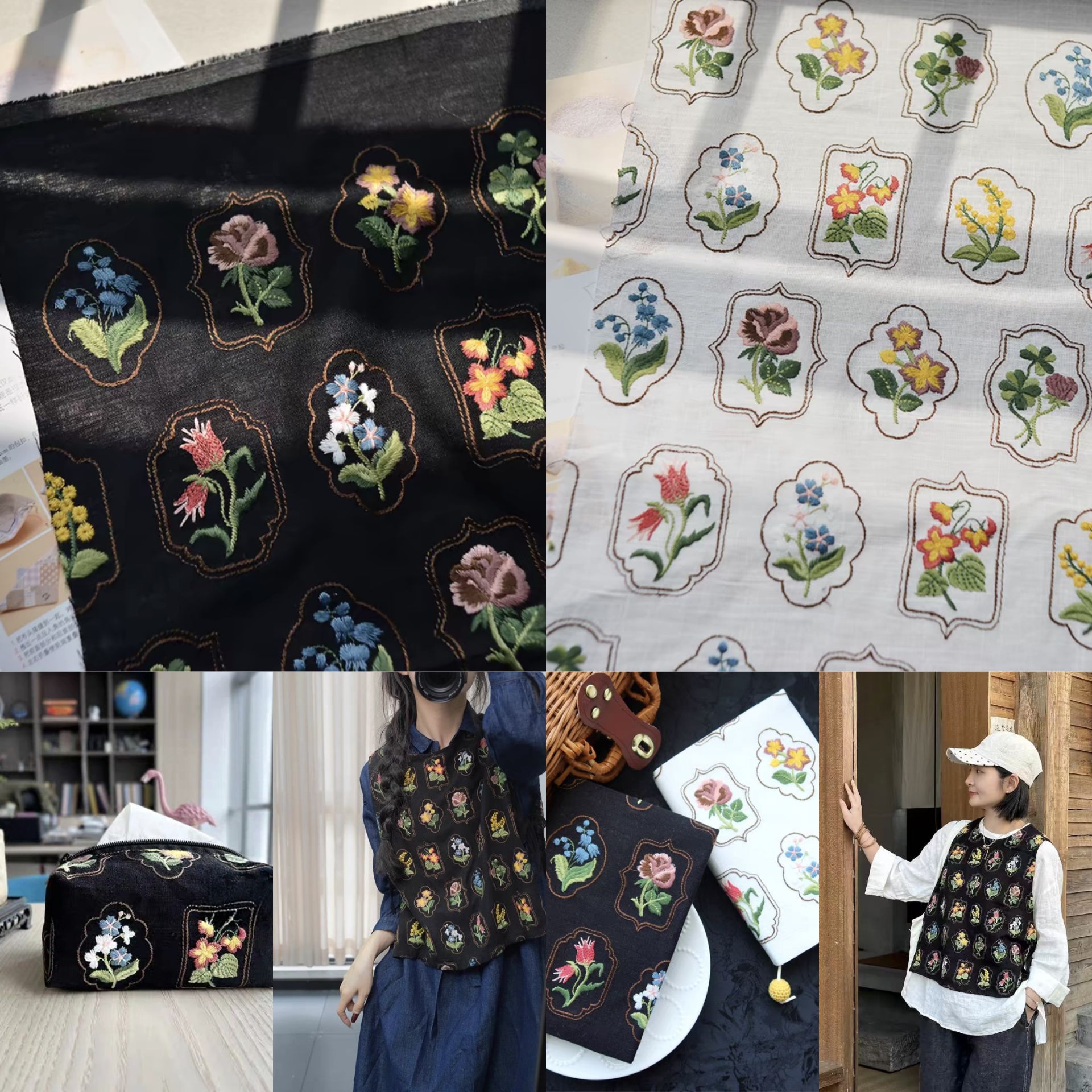 皆川明风格手工ins风刺绣布料棉麻底布 花朵箱包布料手账本面料