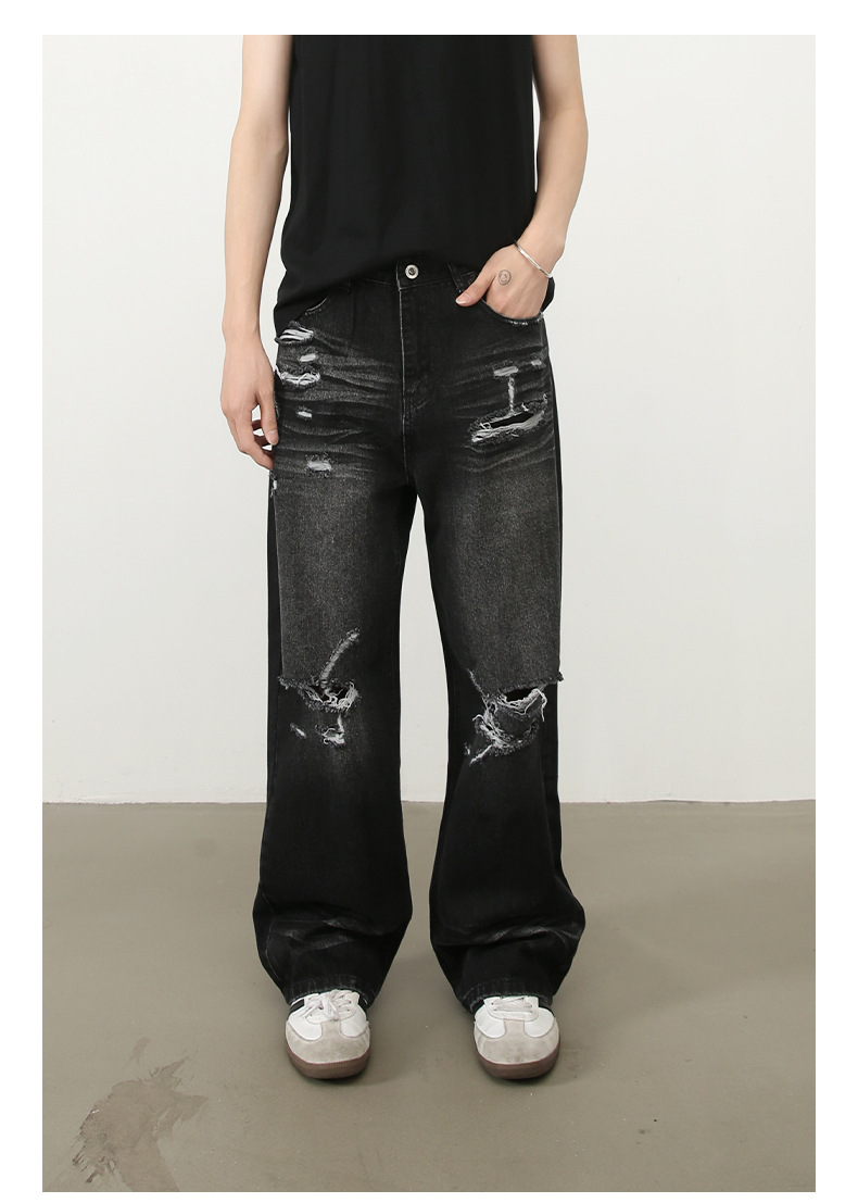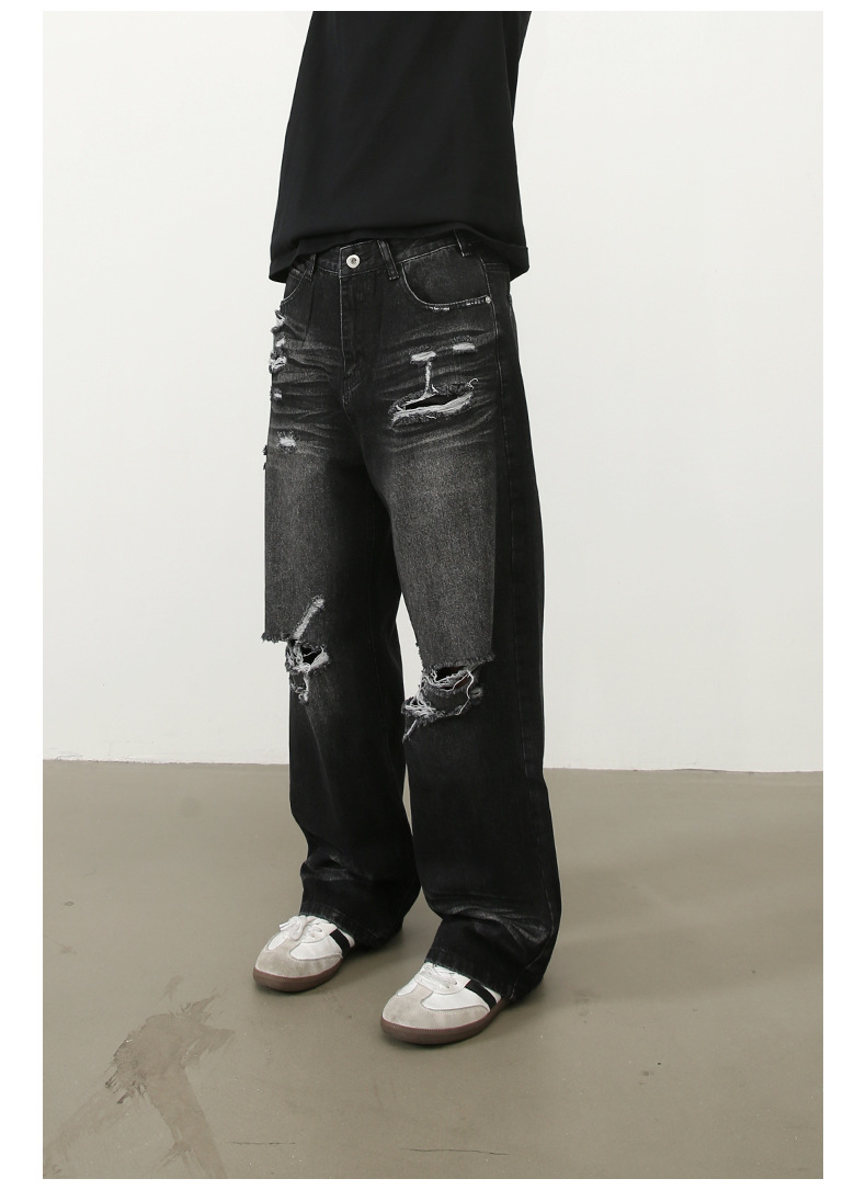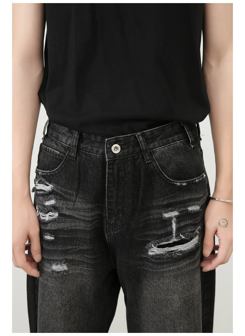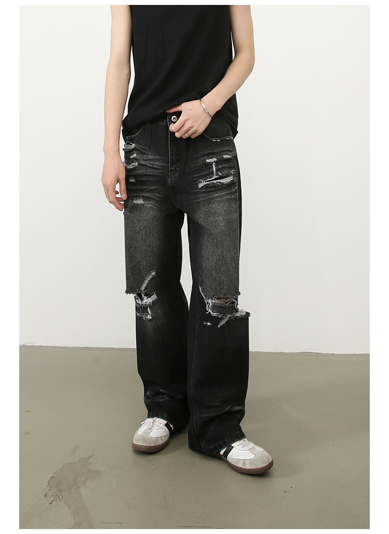 MTLCLOTHESメンズ | アメリカの街頭で古い切り裂きレトロな穴を作るフリンジvibeゆるいジーンズブーム