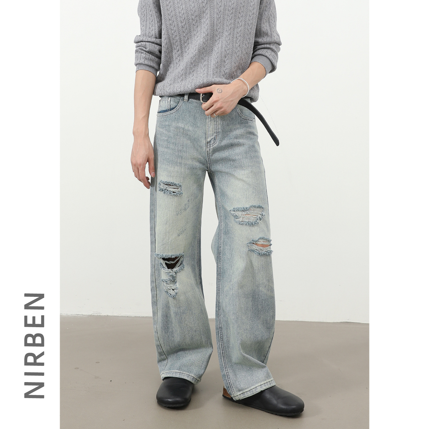 Nirbenデニム | アメリカのレトロなハイストリートの水洗い穴を開けたジーンズ
