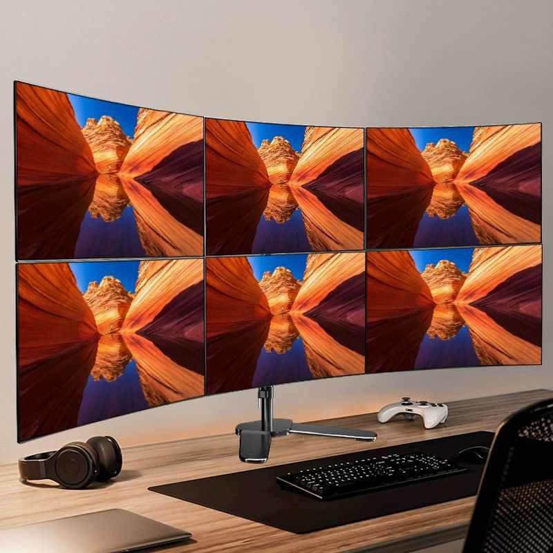 コンピュータモニタースタンド 6画面マルチスクリーンスプライシングスタンド マルチアプリケーションデスクトップユニバーサル回転 6画面スタンド