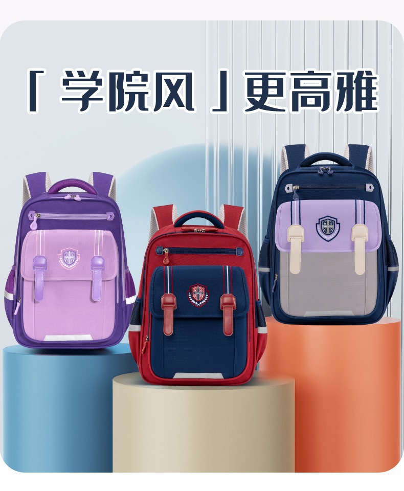 英伦风一体式小学生书包男女格纹大容量防泼水减负护脊儿童双肩包