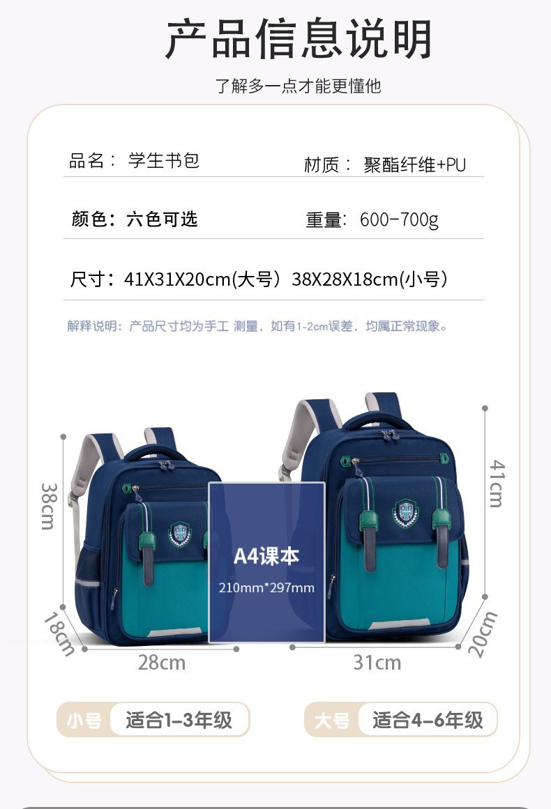 Nezha ランドセル Ao Bing 多用途 大容量 軽量 負担軽減 リュックサック 小学生 3 年生、4 年生、5 年生、6 年生の男の子と女の子向け